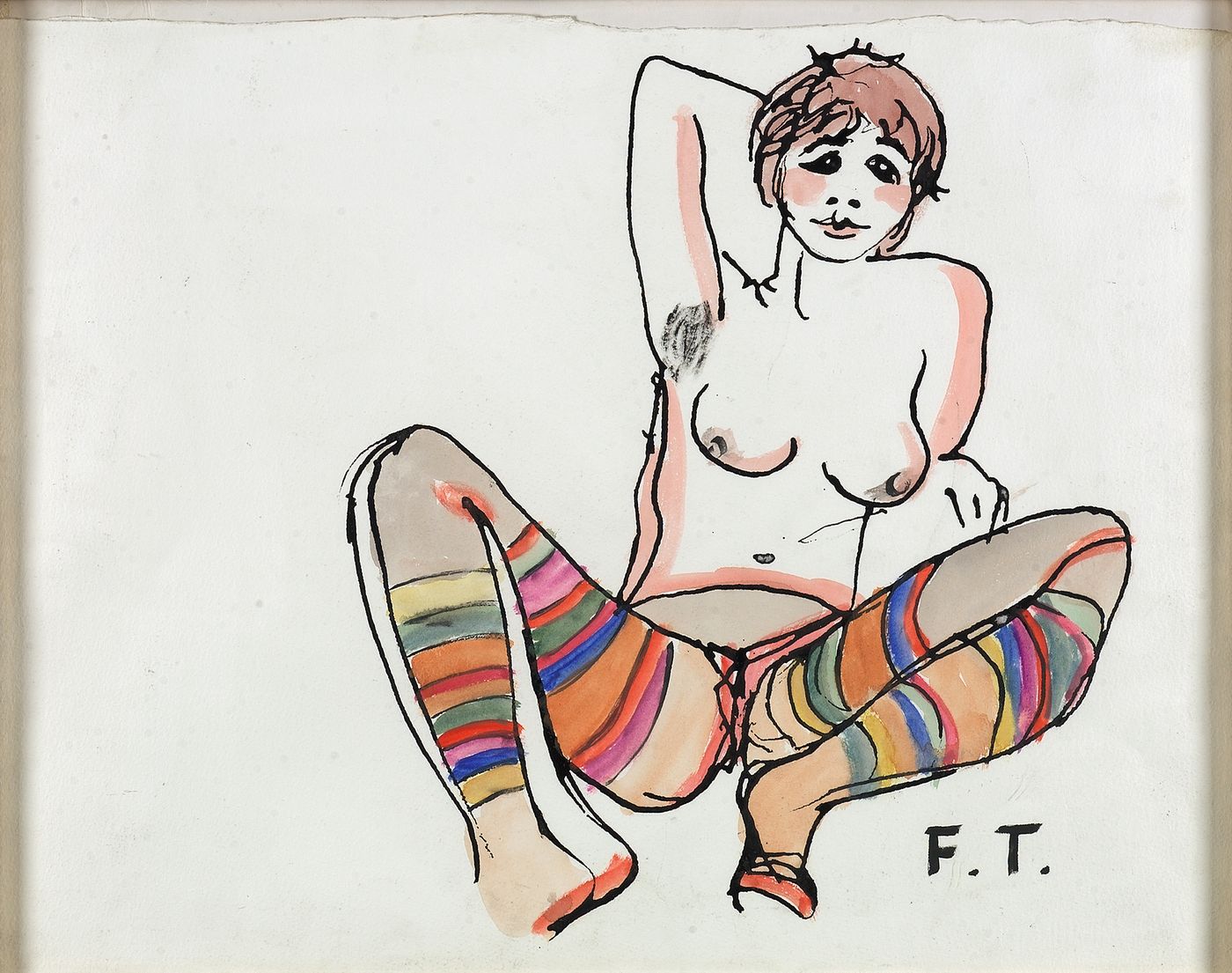 TABUSSO FRANCESCO Sesto San Giovanni (MI) 1930 "Le calze a righe" 38x50 tecnica mista su carta Opera siglata in basso a destra
