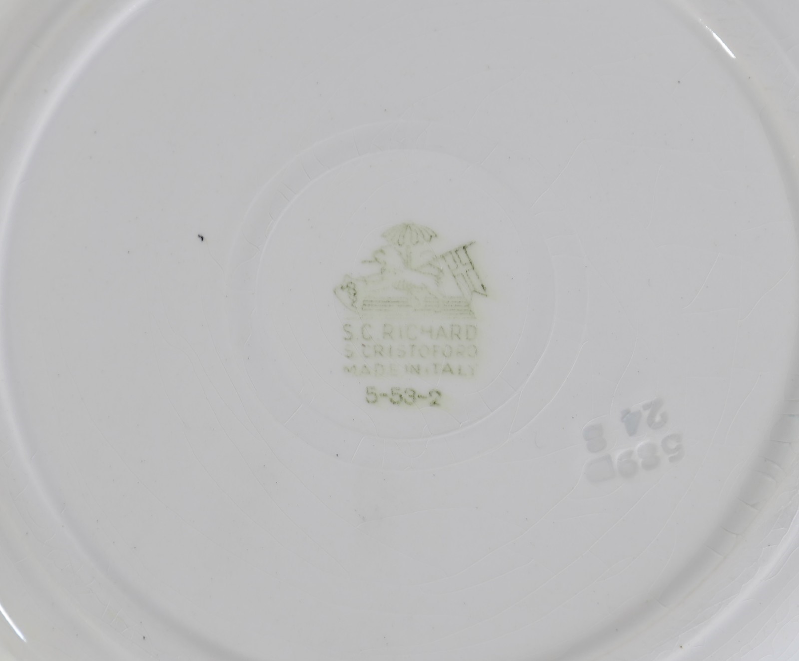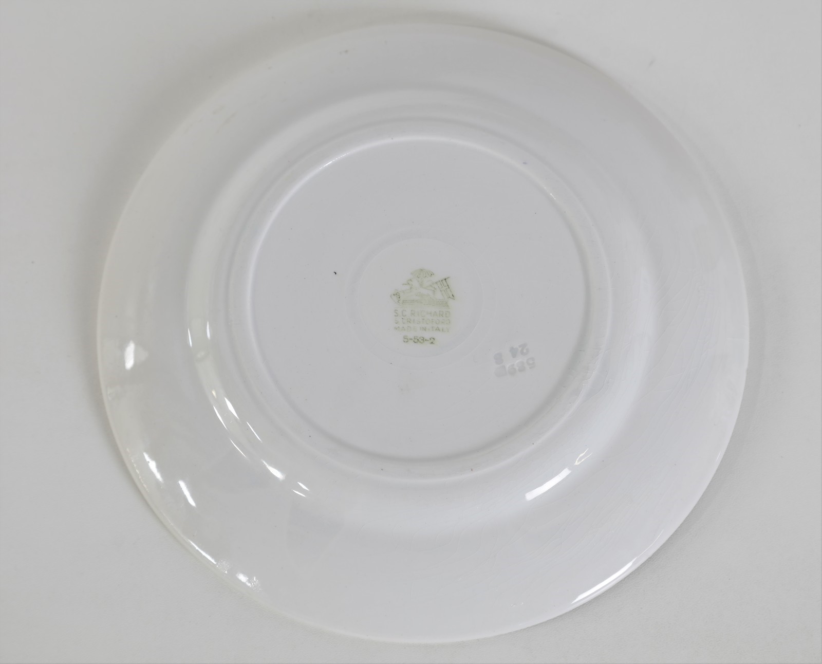 GINORI RICHARD Three plates. Ceramic. Cm 24,00 x 3,00. Ceramics, marked and numbered on the back: "S. C. Richard, S. Cristoforo, Made in Italy, 5-53-2",