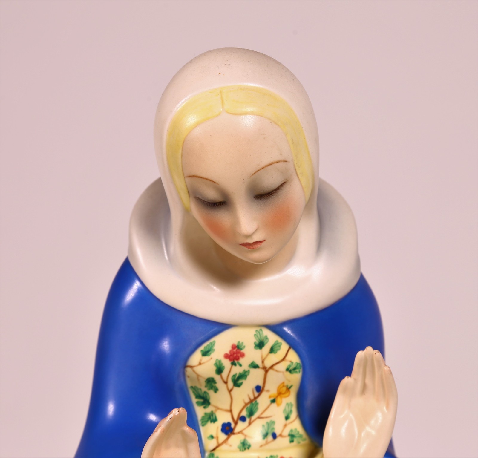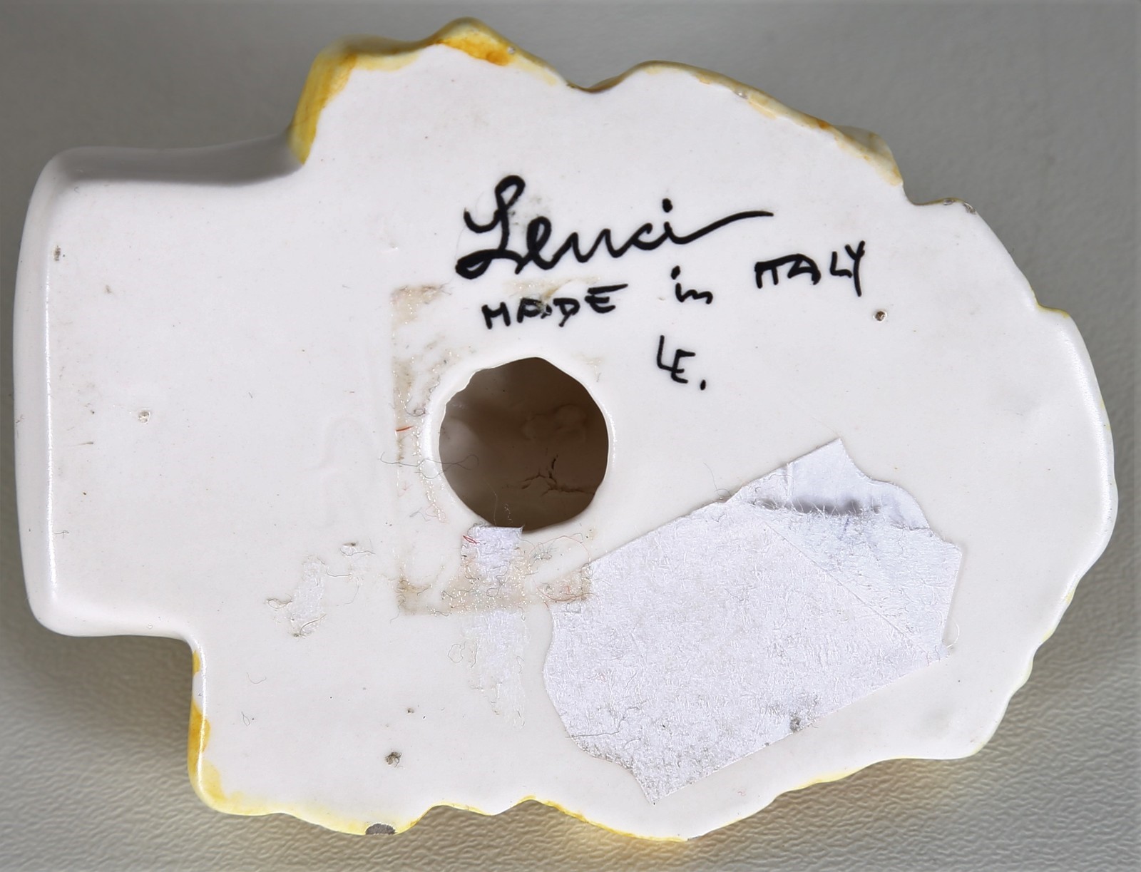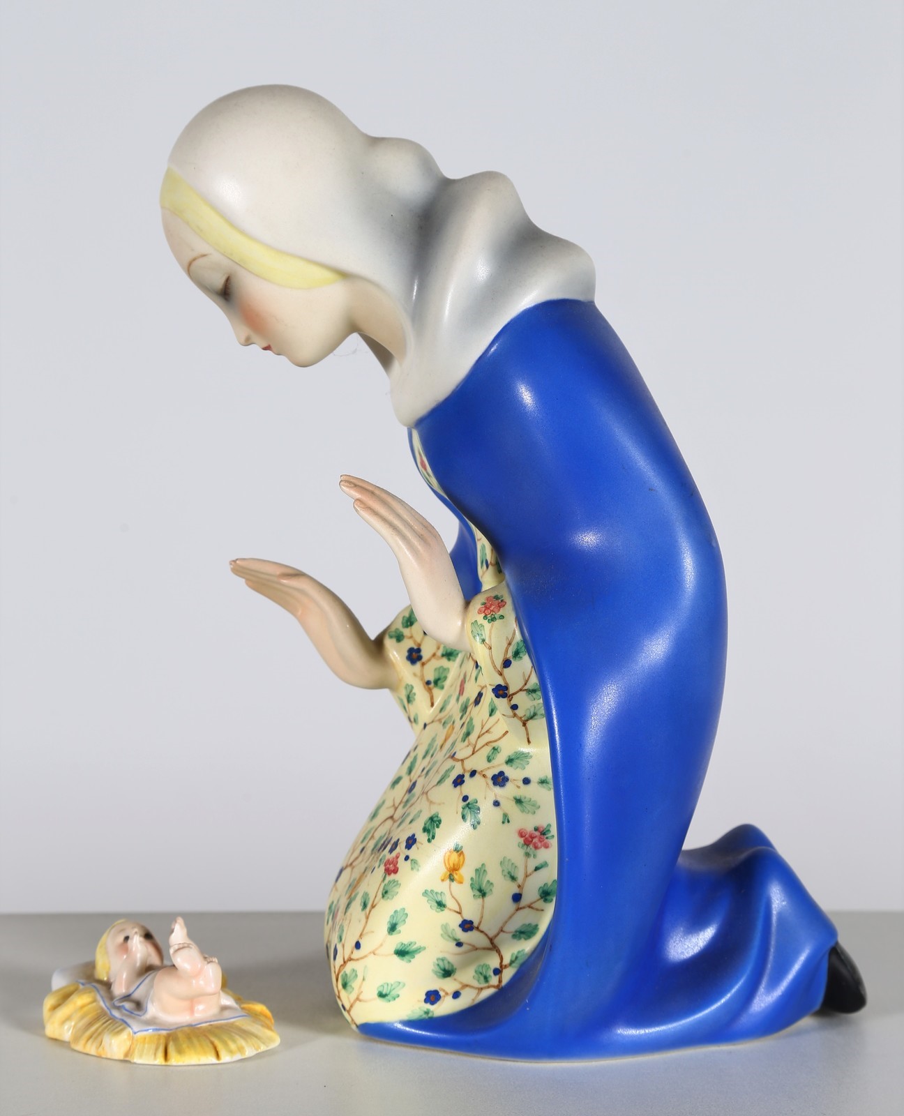 LENCI Madonna with child. Terracotta. Cm 8,50 x 27,00. Lacquered pottery painted in polychrome. Lenci Torino, 1935. Signature and date on the base.
