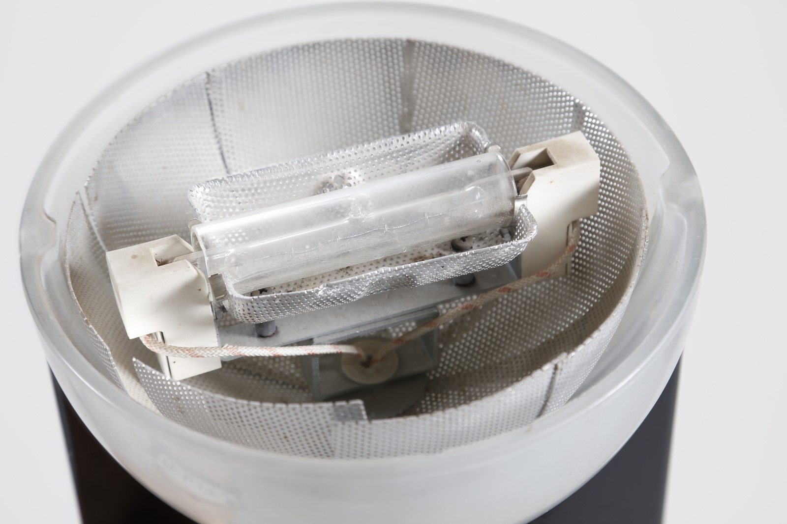 FRATTINI GIANFRANCO (1926 - 2004) Lampada da terra mod. Adonis. Metallo laccato, vetro opalino e ghisa. . Cm 36,00 x 190,00 x 38,00. Stelo in acciaio verniciato lucido nero. Paralume in vetro opalino a semisfera e basamento in ghisa, prodotto per Luci, Milano. Anni 70/80.
