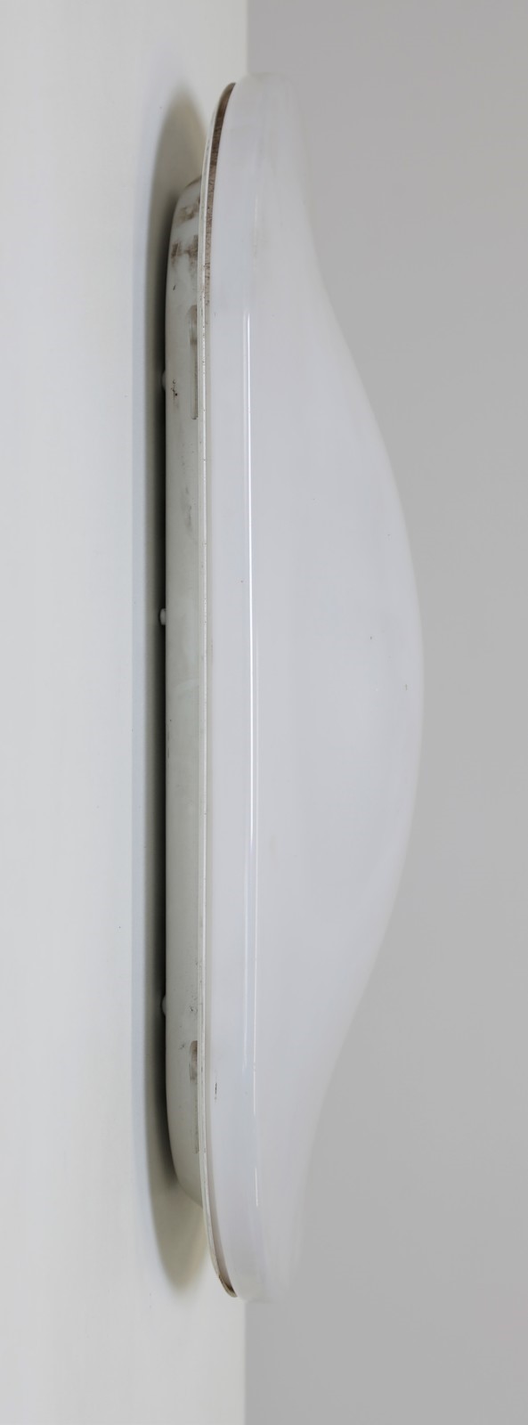 I GUZZINI Tre appliques. Metallo laccato e plexiglass. Cm 24,00 x 54,00 x 11,00. Anni 70. Dimensioni applique piccola: H 45 cm x L 25 cm x P 11 cm