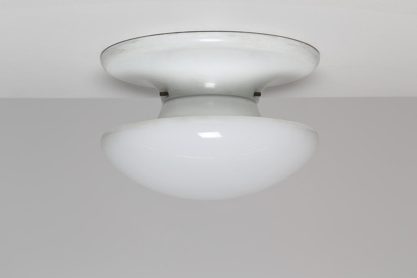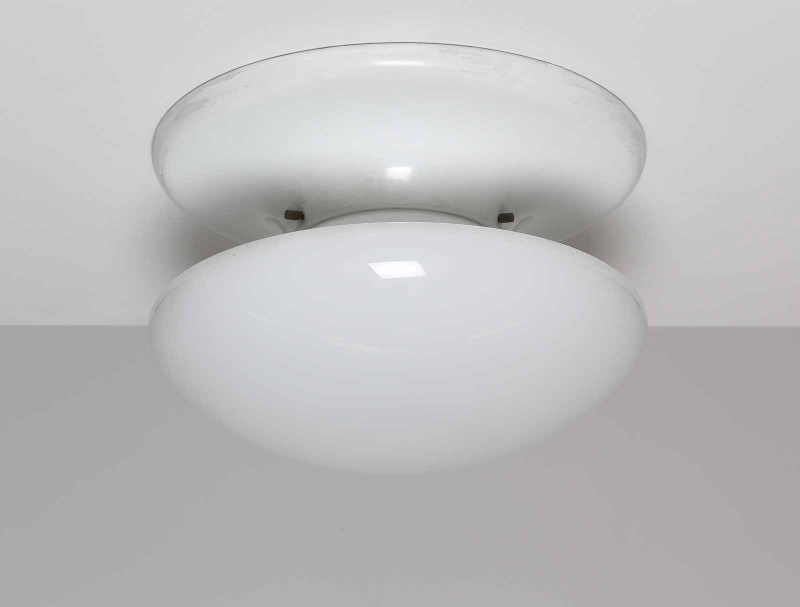 MANIFATTURA ITALIANA Lampada da soffitto. Metallo laccato e vetro satinato....