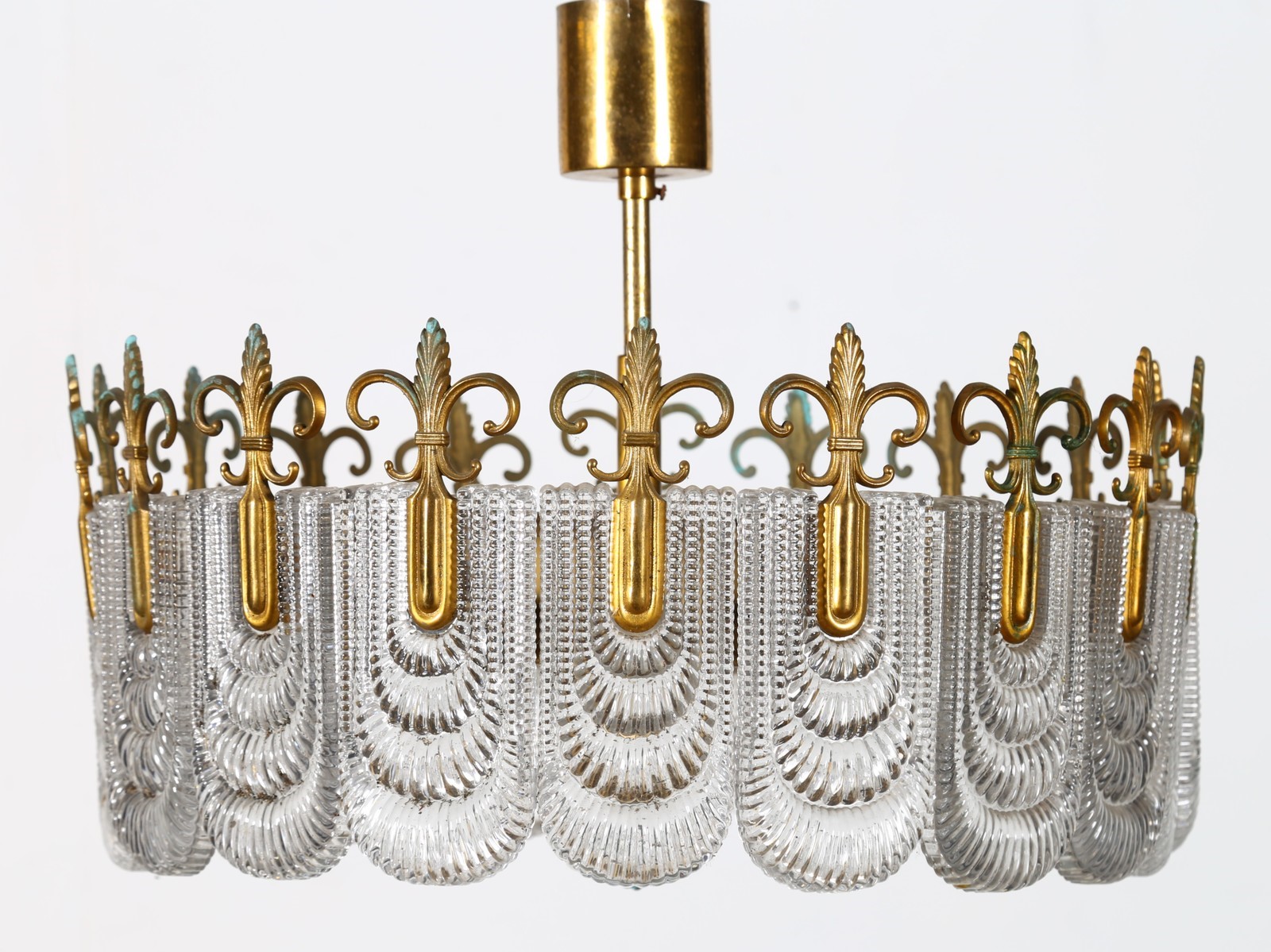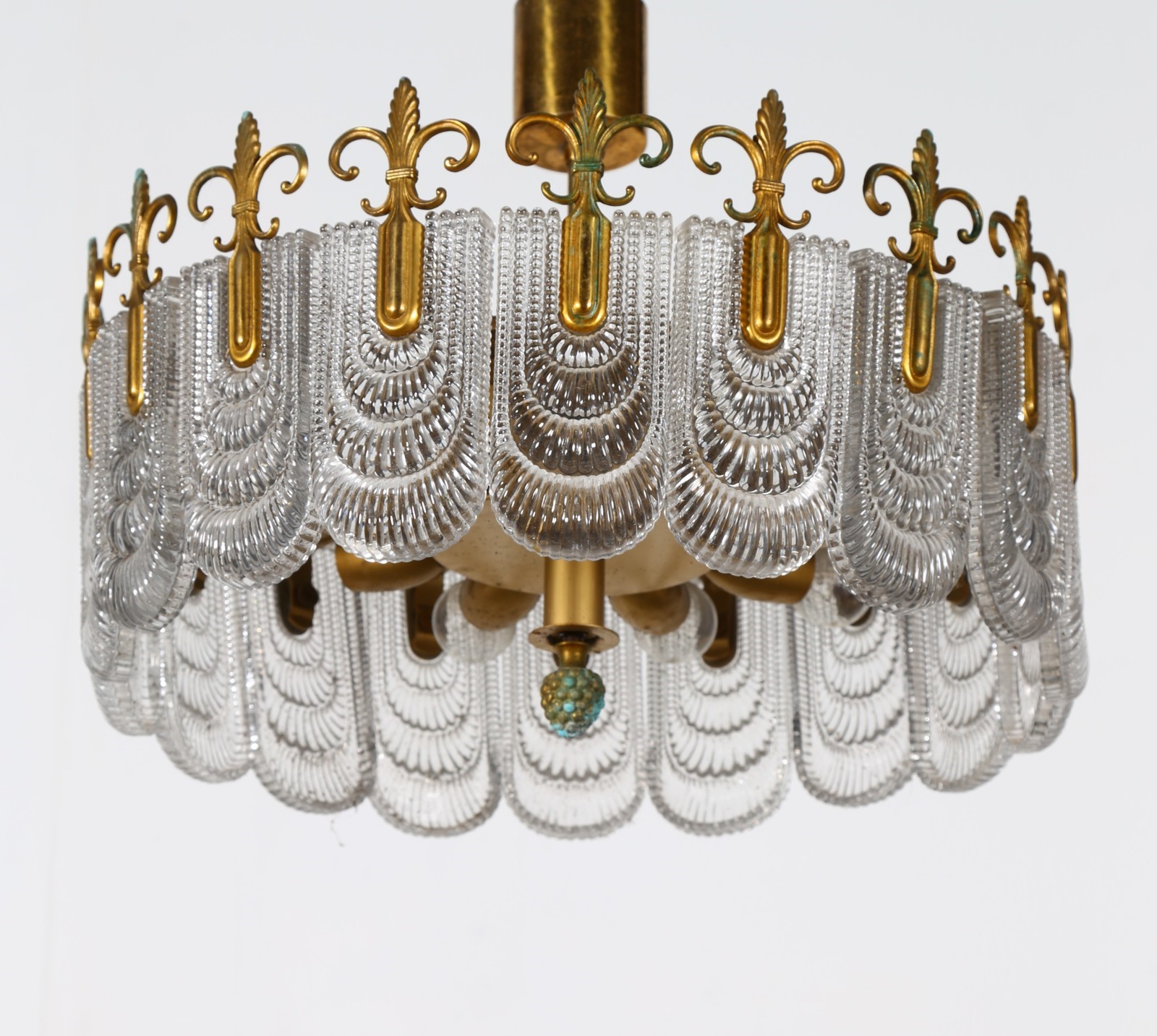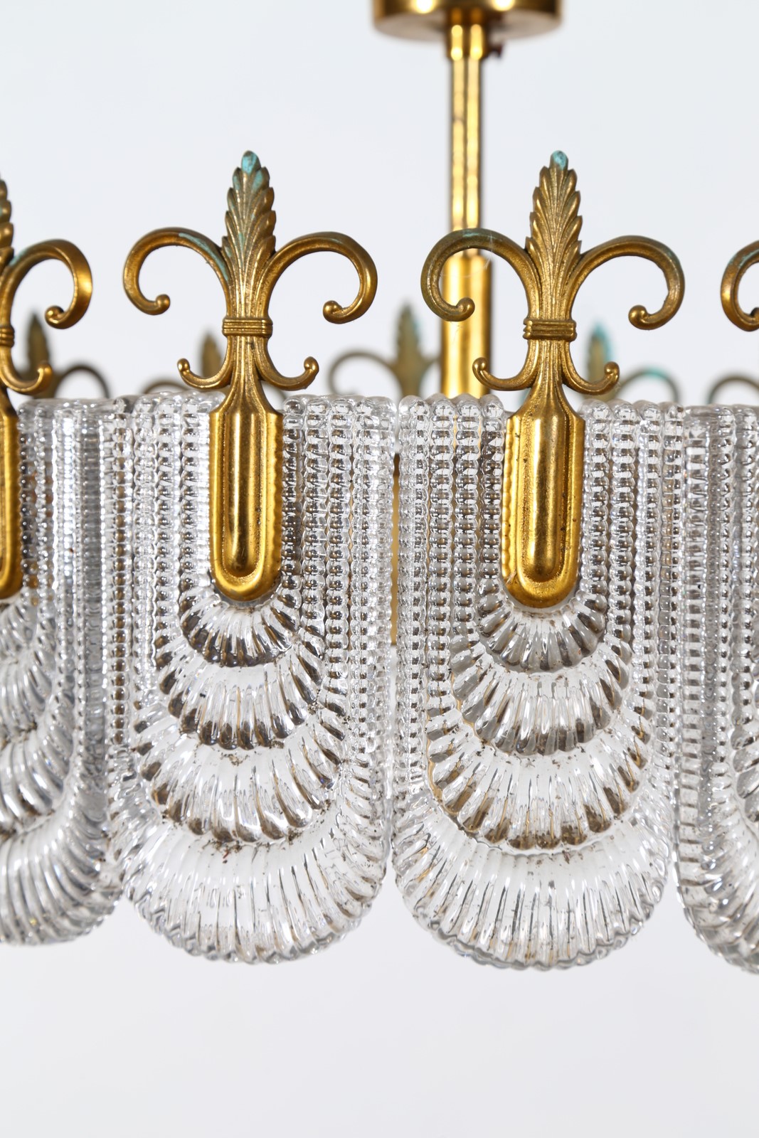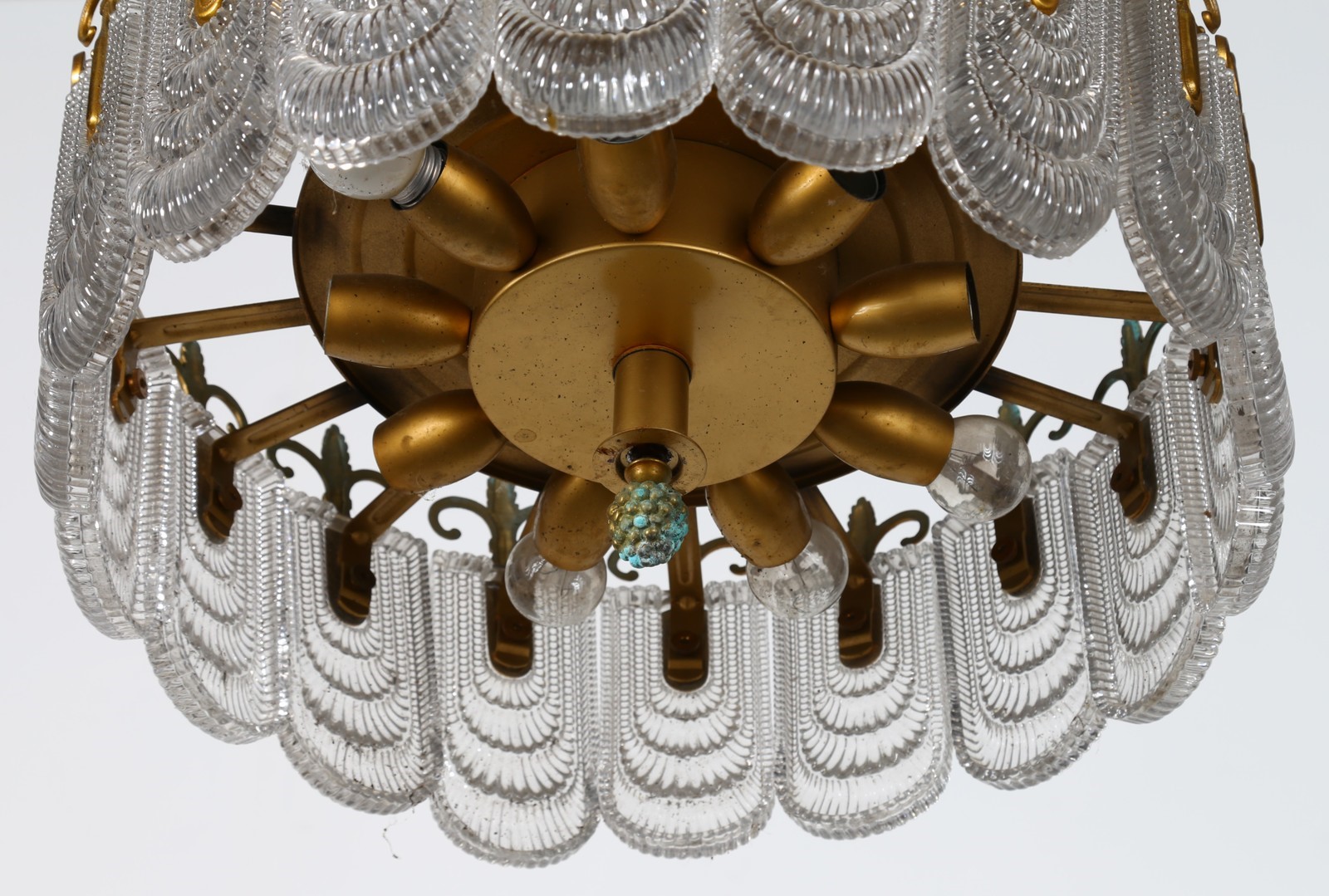 MANIFATTURA ITALIANA Lampadario. Metallo, vetro e ottone. Cm 50,00 x 40,00 x...