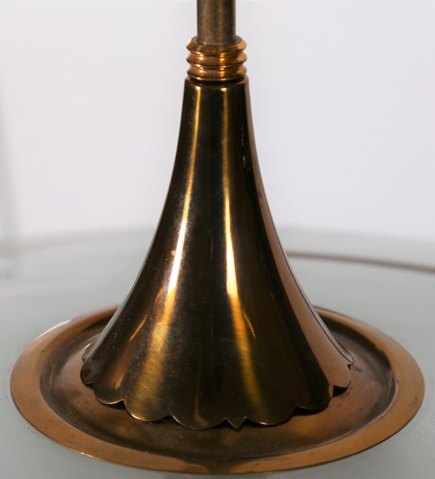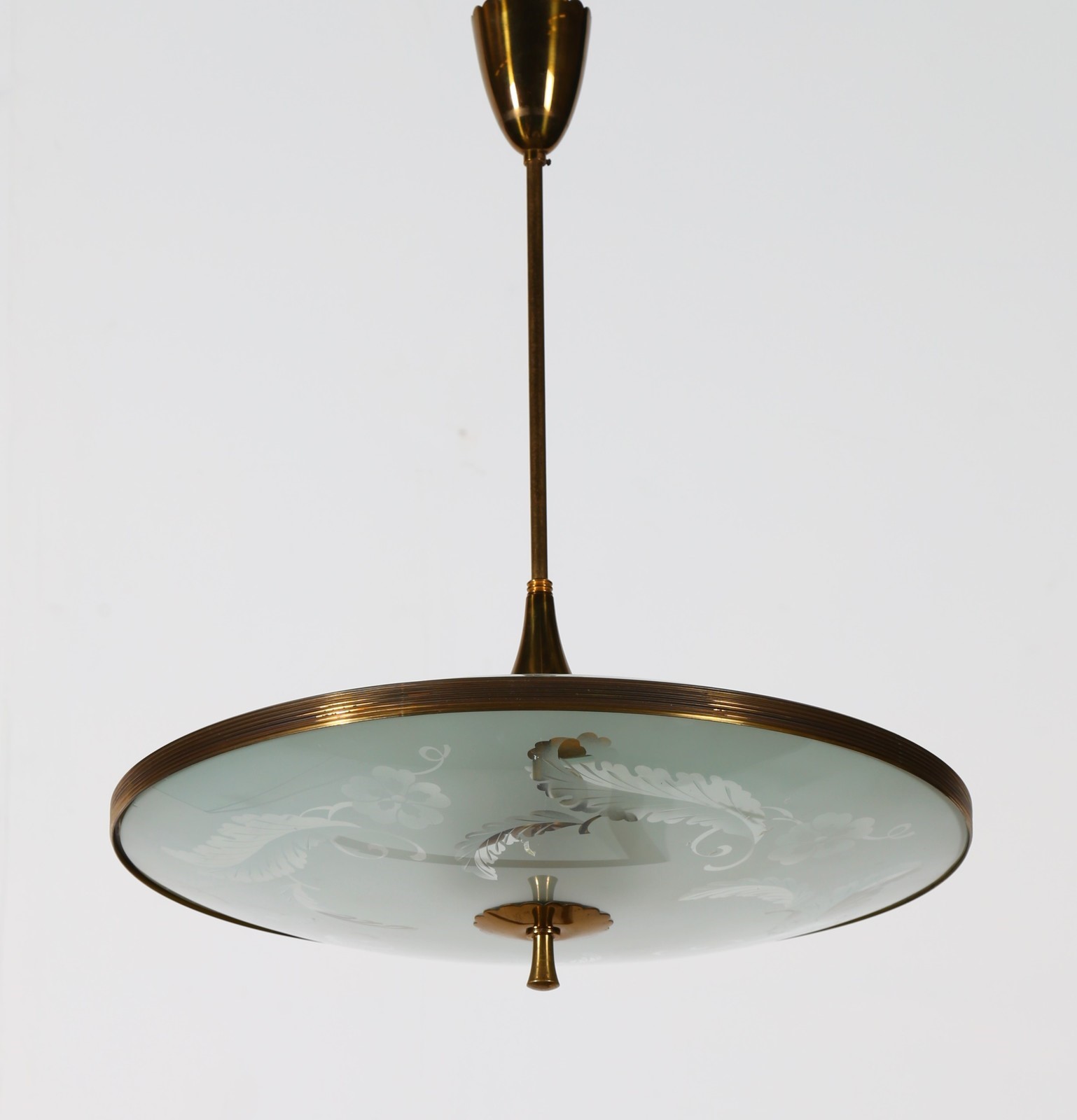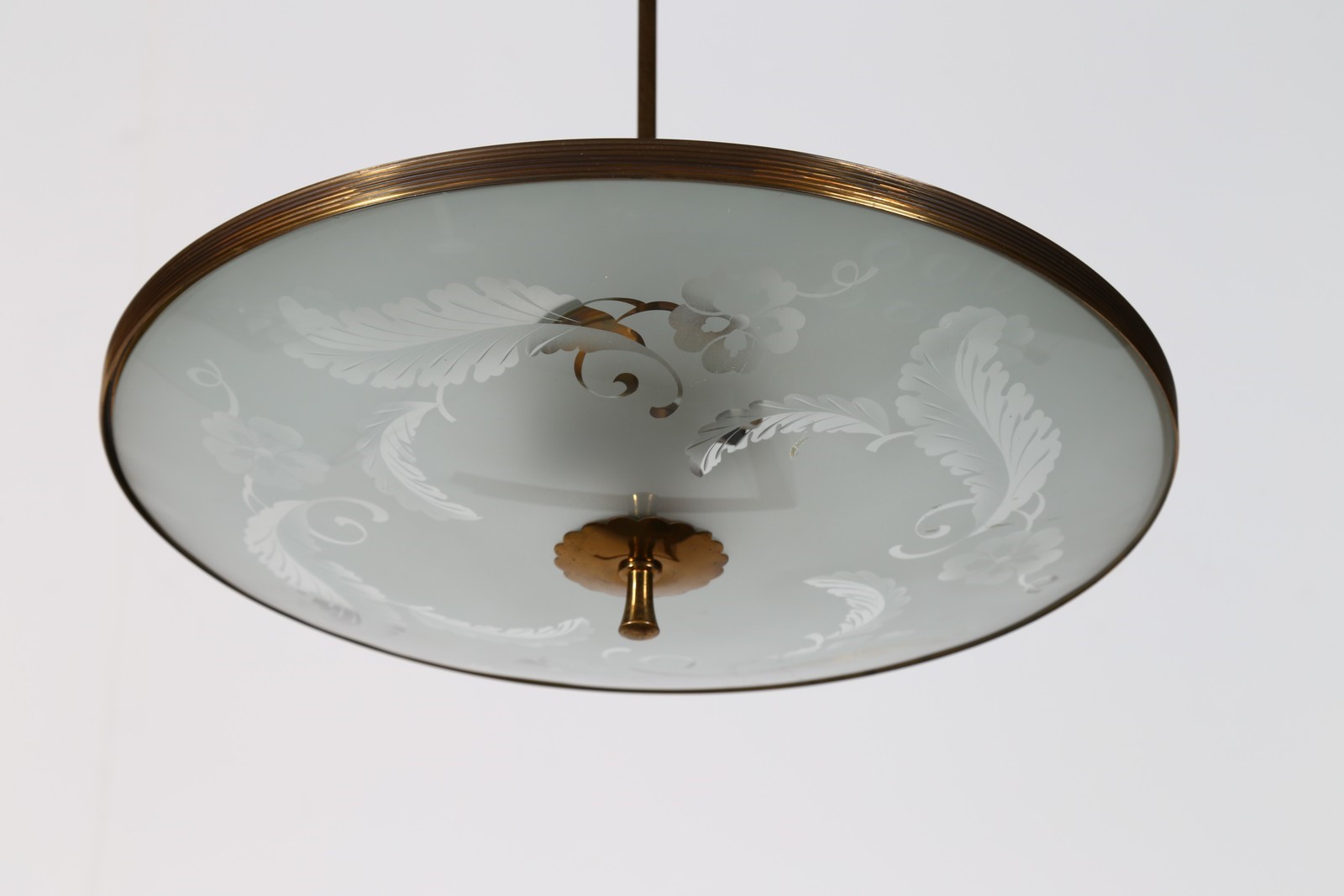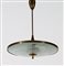 ITALIAN MANUFACTURE Ceiling lamp. Brass and glass. Cm 52,00 x 65,00 x 52,00. In the manner of Fontana Arte, 50s.