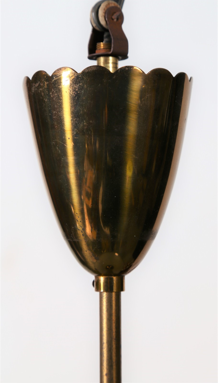 MANIFATTURA ITALIANA Lampadario. Ottone e vetro. Cm 52,00 x 65,00 x 52,00. Nello stile di Fontana Arte, Anni 50.