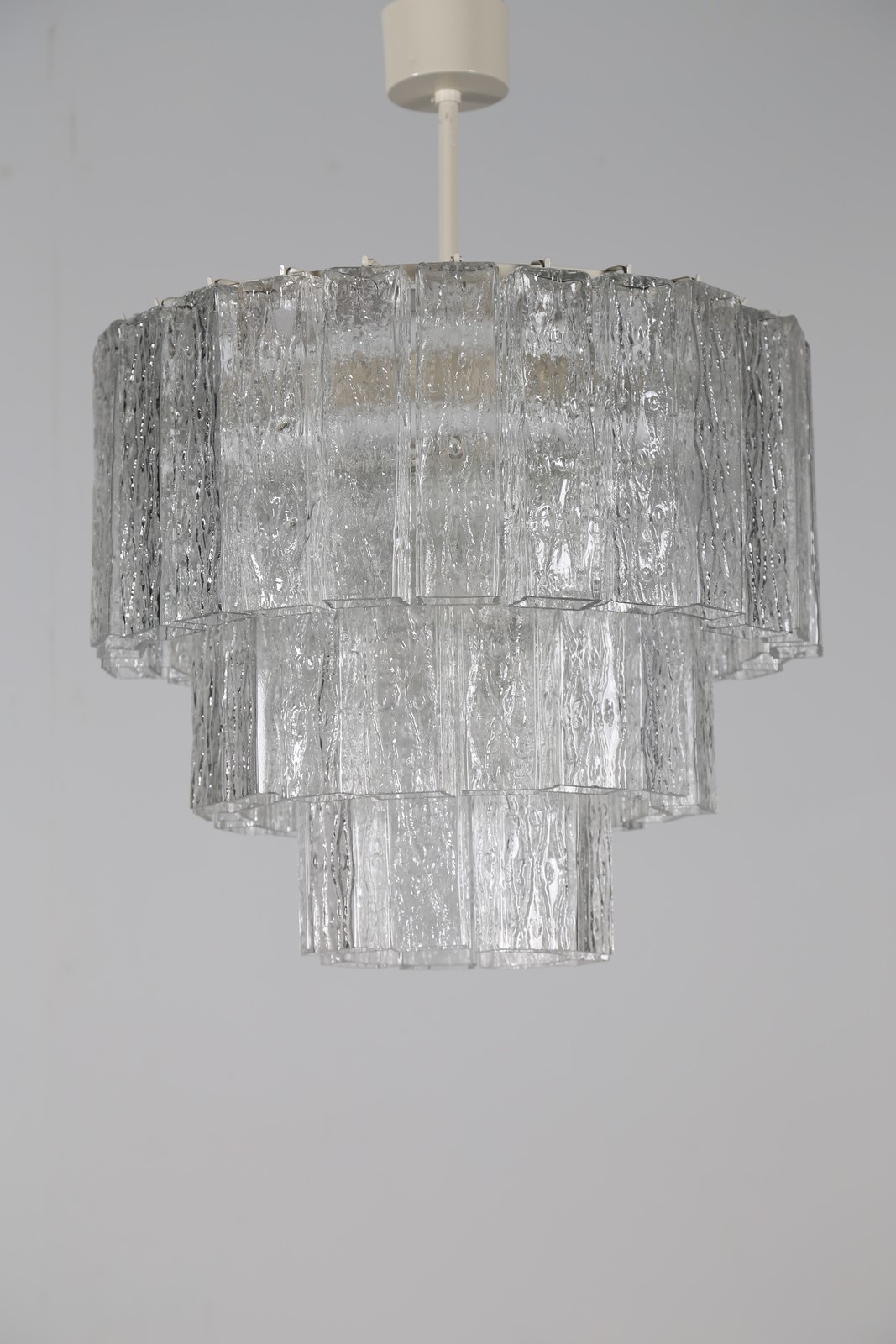 FRATELLI TOSO Lampadario. Metallo laccato, vetro. Cm 70,00 x 100,00 x 70,00....