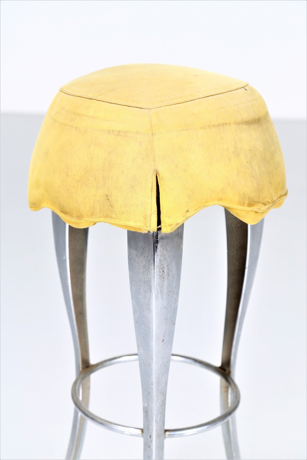 MANIFATTURA ITALIANA Sgabello. Metallo, tessuto. Cm 40,00 x 85,00 x 40,00. Struttura in metallo cromato, imbottirtura e rivestimento in tessuto. Anni 70.