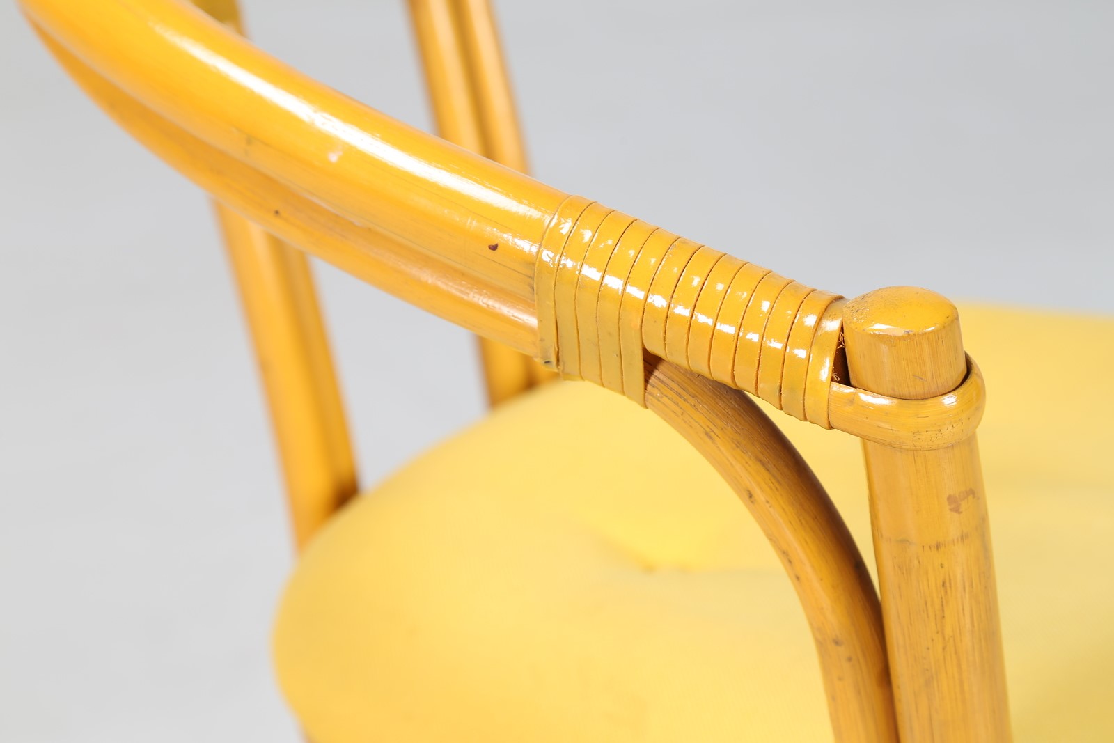 MANIFATTURA ITALIANA Poltroncina. . Cm 62,00 x 78,00 x 52,00. Struttura in bambù laccato, imbottitura e rivestimento in tessuto.