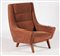 ANONIMO Poltrona. Legno e tessuto. Cm 70,00 x 98,00 x 83,00. Struttura in legno, imbottitura e tessuto. Manifattura danese, anni 40.