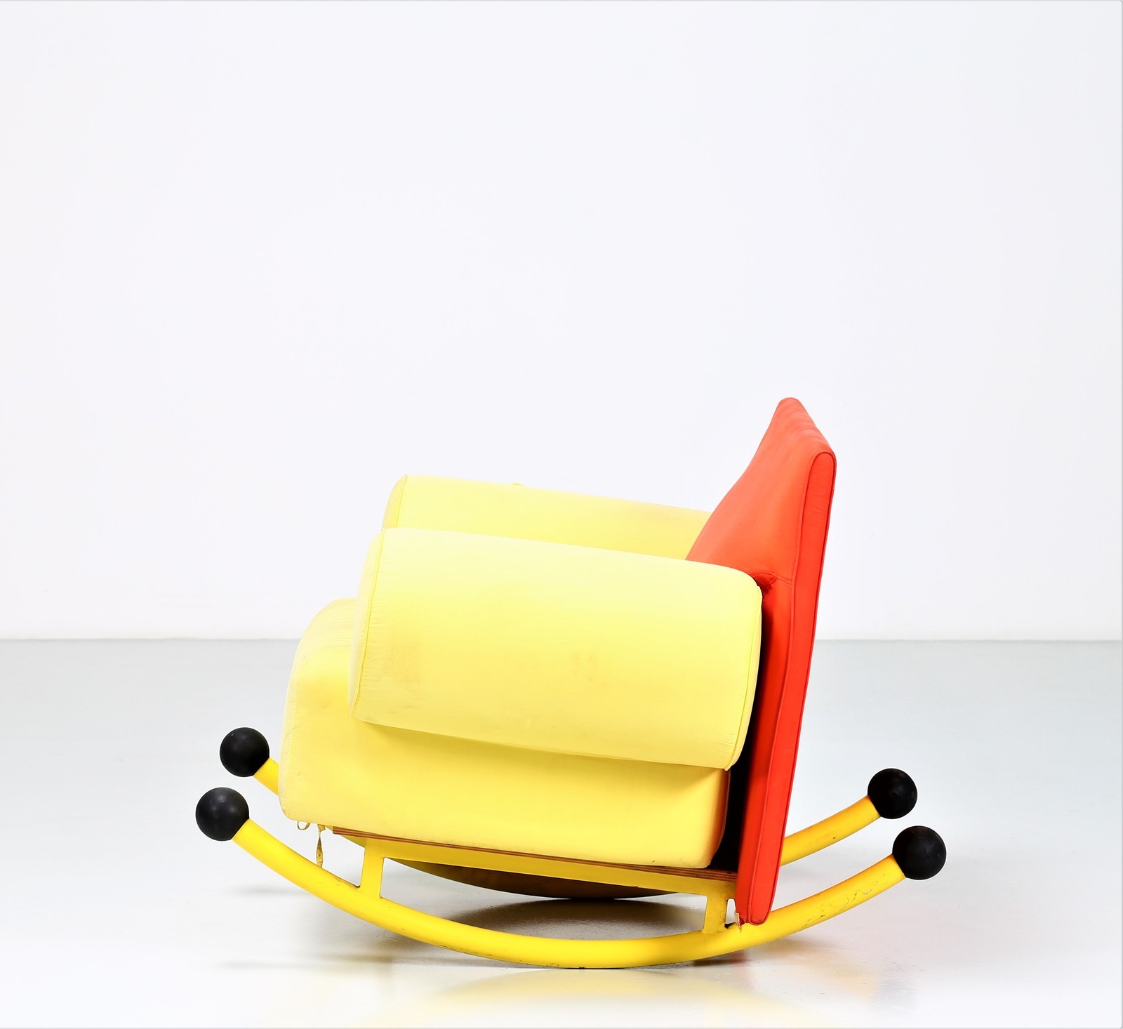 ITALIAN MANUFACTURE Rocking chair. Lacquered metal and fabric. Cm 110,00 x 80,00 x 110,00. Structure in lacquered metal, padding and fabric.