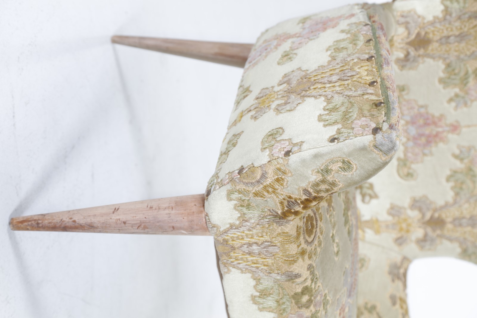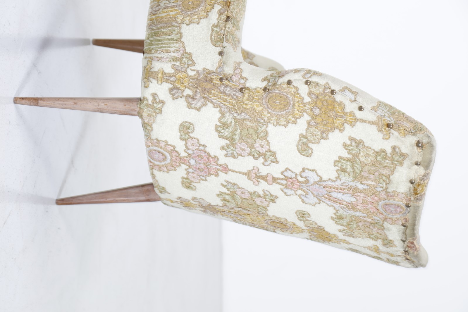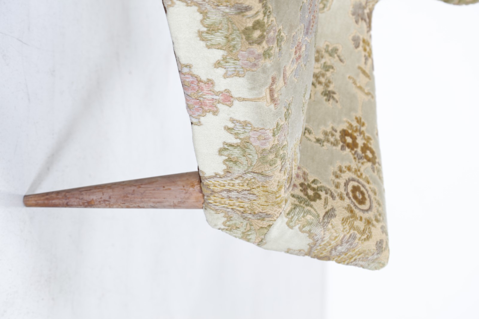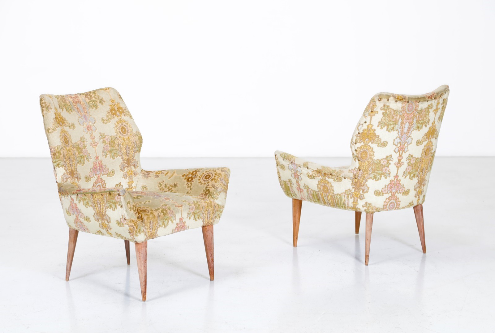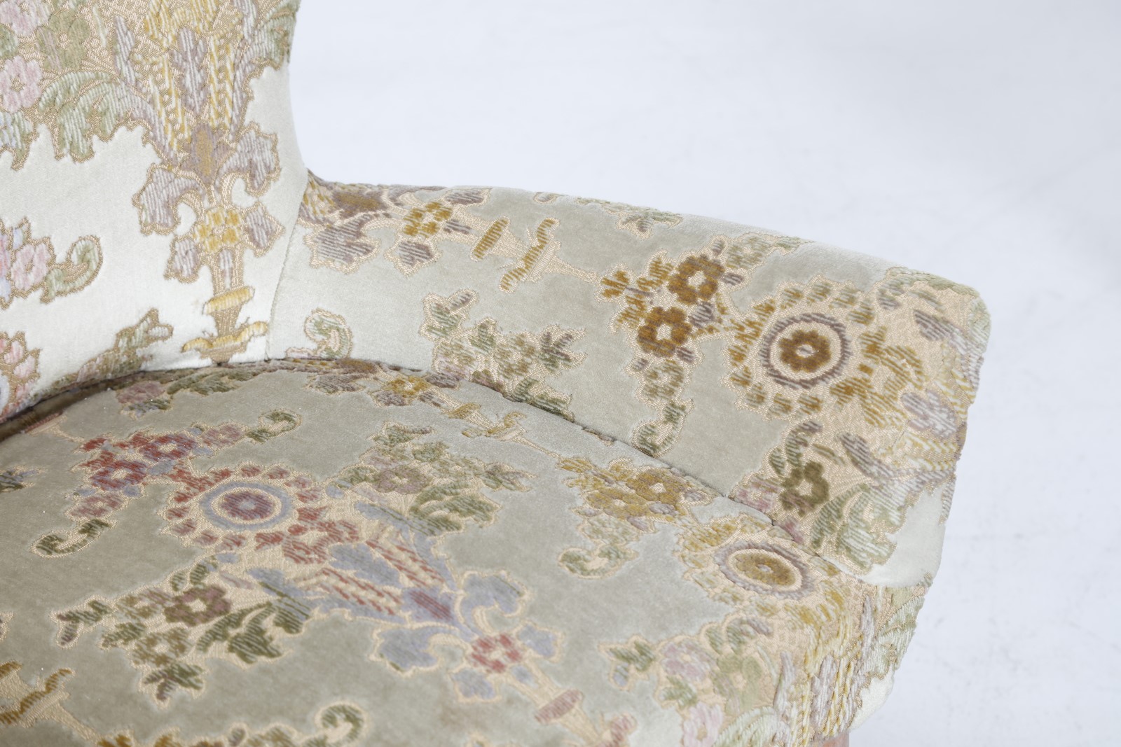 MANIFATTURA ITALIANA Coppia di poltrone. Legno e tessuto. Cm 63,00 x 77,00 x...