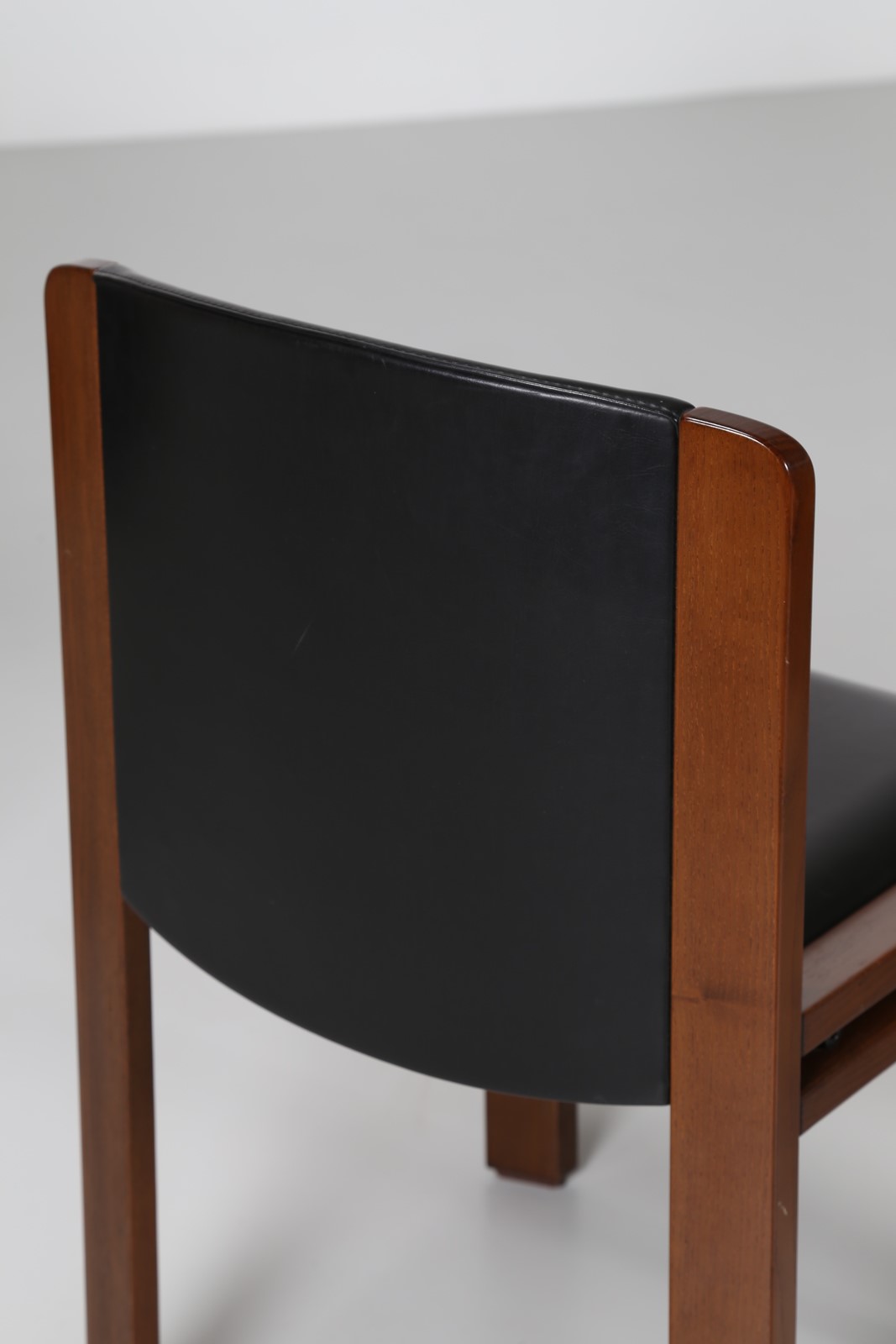COLOMBO JOE (1930 - 1971) Quattro sedie . Legno di noce e pelle. Cm 48,50 x...