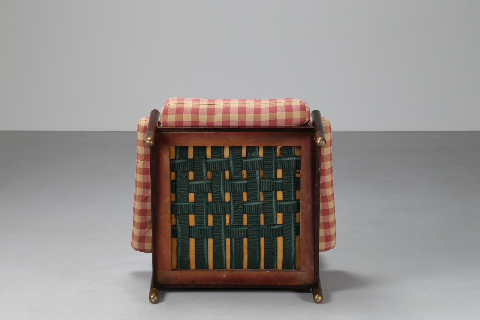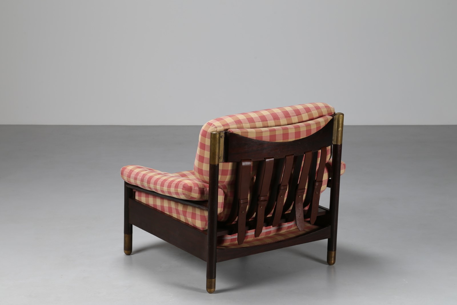 . Rosewood and fabric. Cm 94,00 x 100,00 x 85,00. Rosewood frame, brass tips, upholstery and fabric covering. Sella model for SORMANI, 1960s.