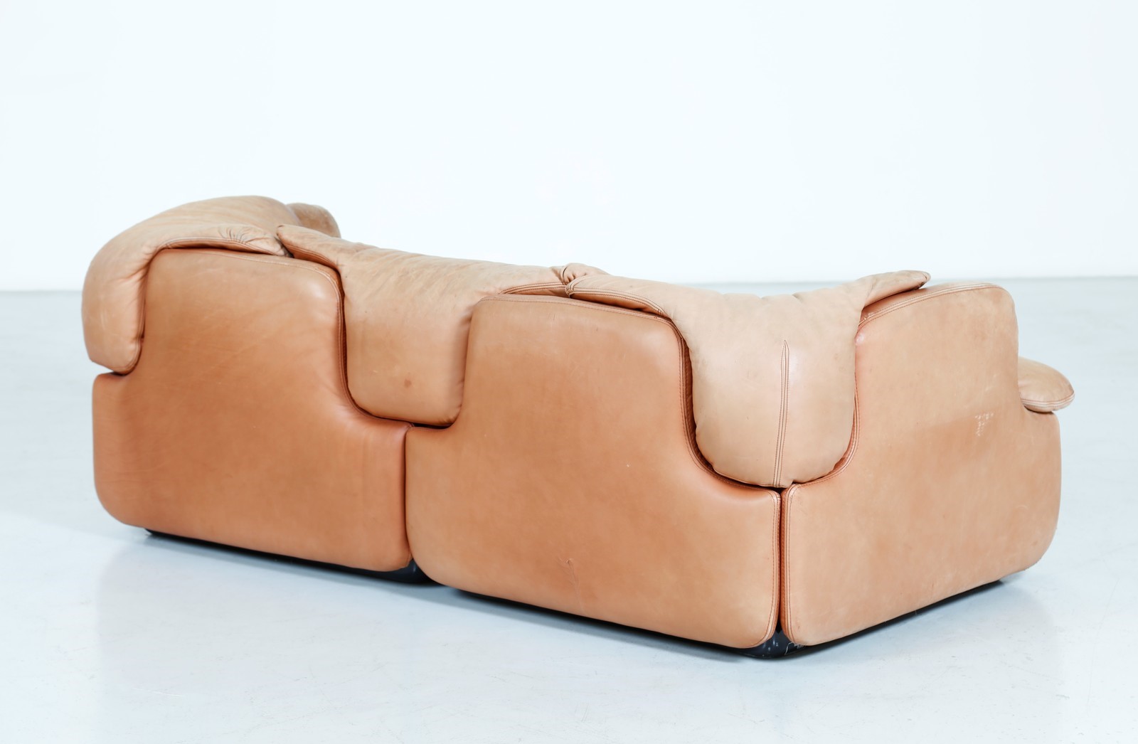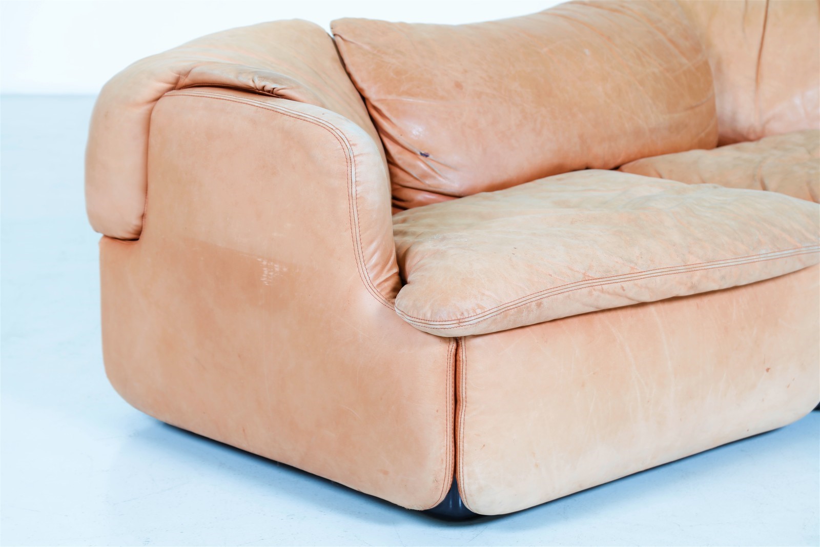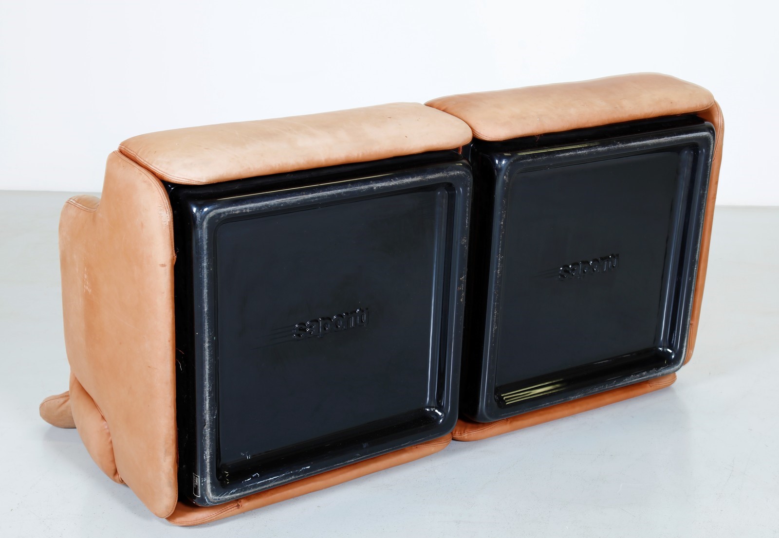 ROSSELLI ALBERTO (1921 - 1976) Sofa. Metal and leather. Cm 160,00 x 57,00 x 65,00. Structure in plastic and metal, padding and original leather covering. Confidential Model, for Saporiti (Present Brand), 70s.