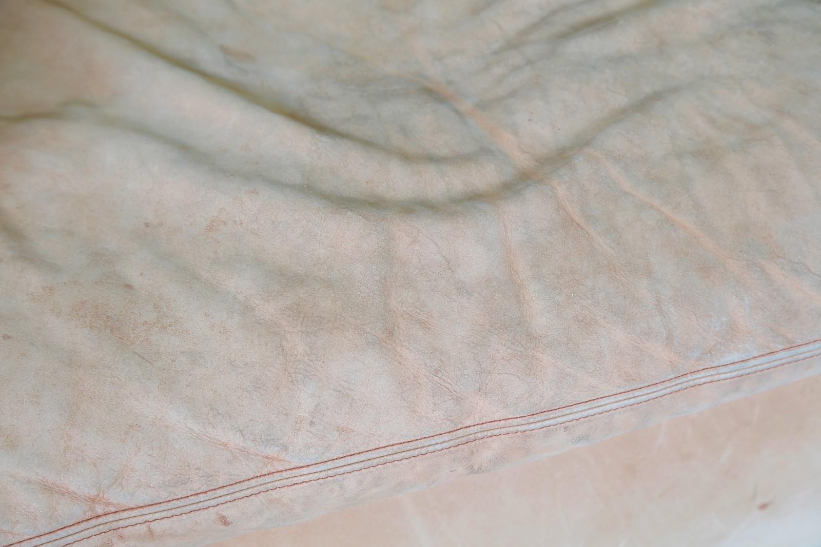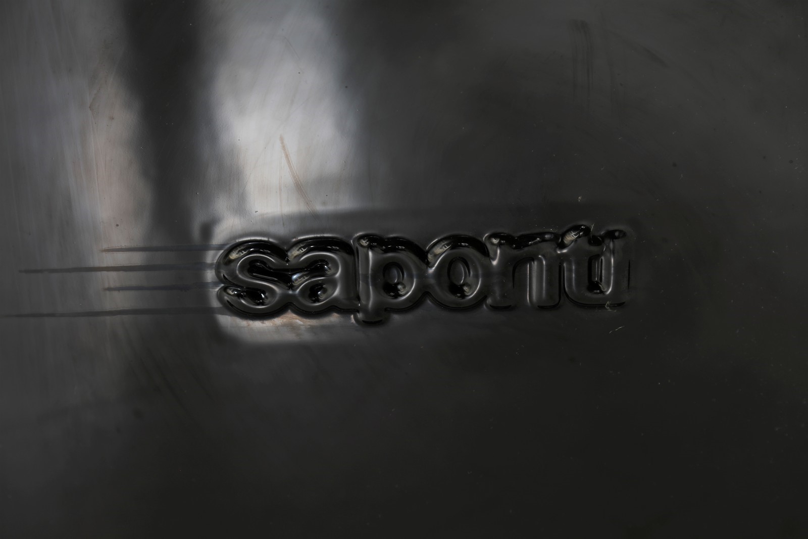 ROSSELLI ALBERTO (1921 - 1976) Divano. Metallo e pelle. Cm 160,00 x 57,00 x 65,00. Struttura in plastica e metallo, imbottitura e rivestimento originale in pelle. Modello Confidential, per Saporiti (Marchio presente), anni 70.