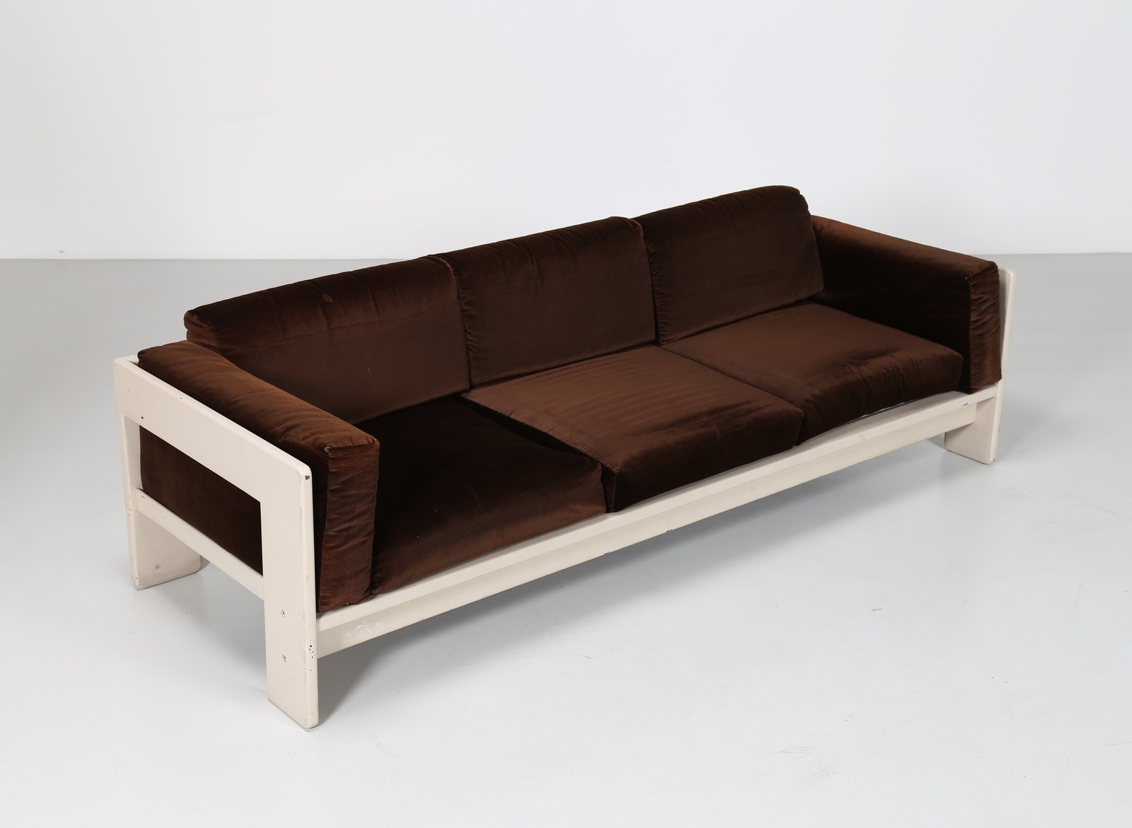SCARPA TOBIA (n. 1935) Sofa . Wood and velvet. Cm 210,00 x 65,00 x 76,00. Structure in white lacquered wood, upholstery and velvet covering. Bastiano model, for Gavina, 70s.