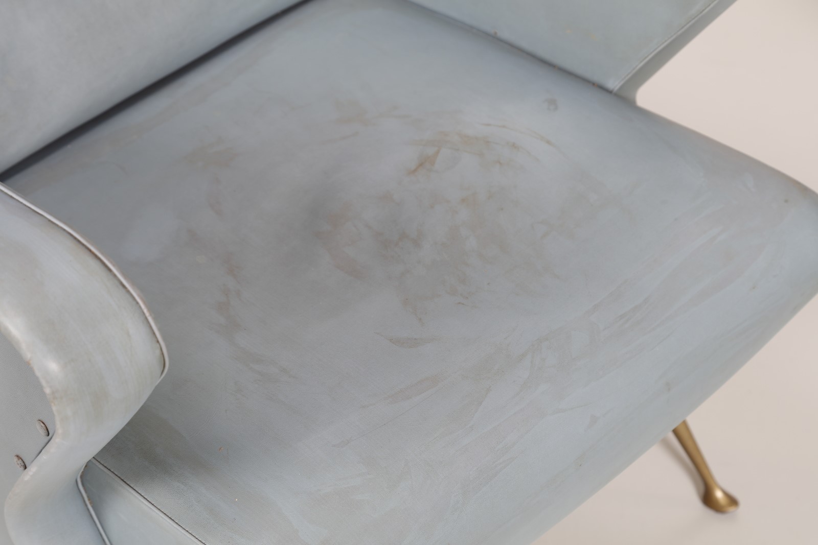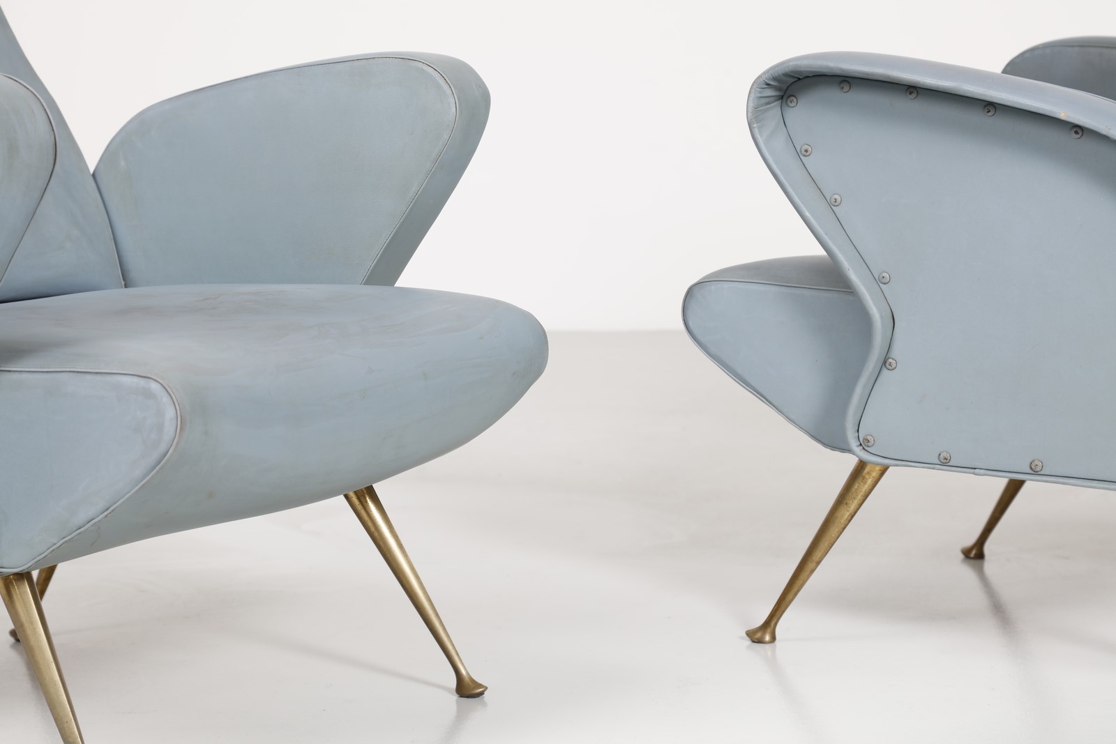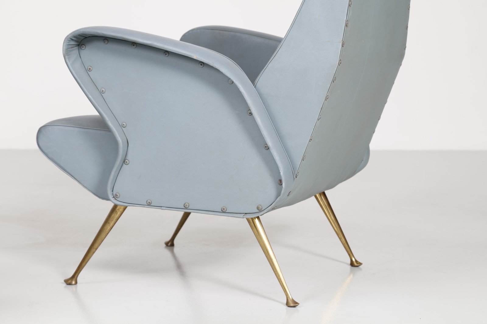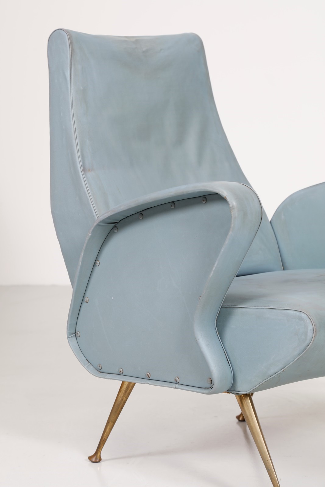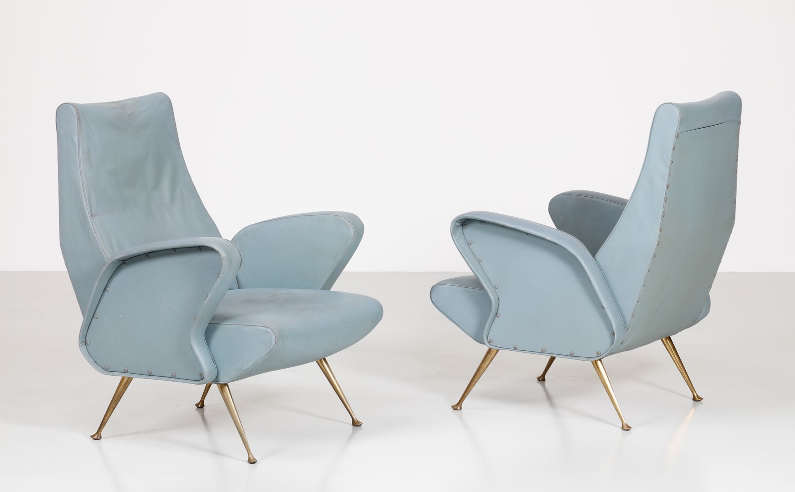 ZONCADA NINO (1898 - 1988) Coppia di poltrone. Ottone e skai. Cm 68,00 x 93,00 x 70,00.
