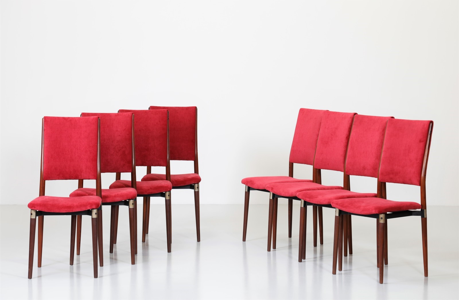 GERLI EUGENIO (n. 1923) Otto sedie. Legno di palissandro e tessuto. Cm 42,00...