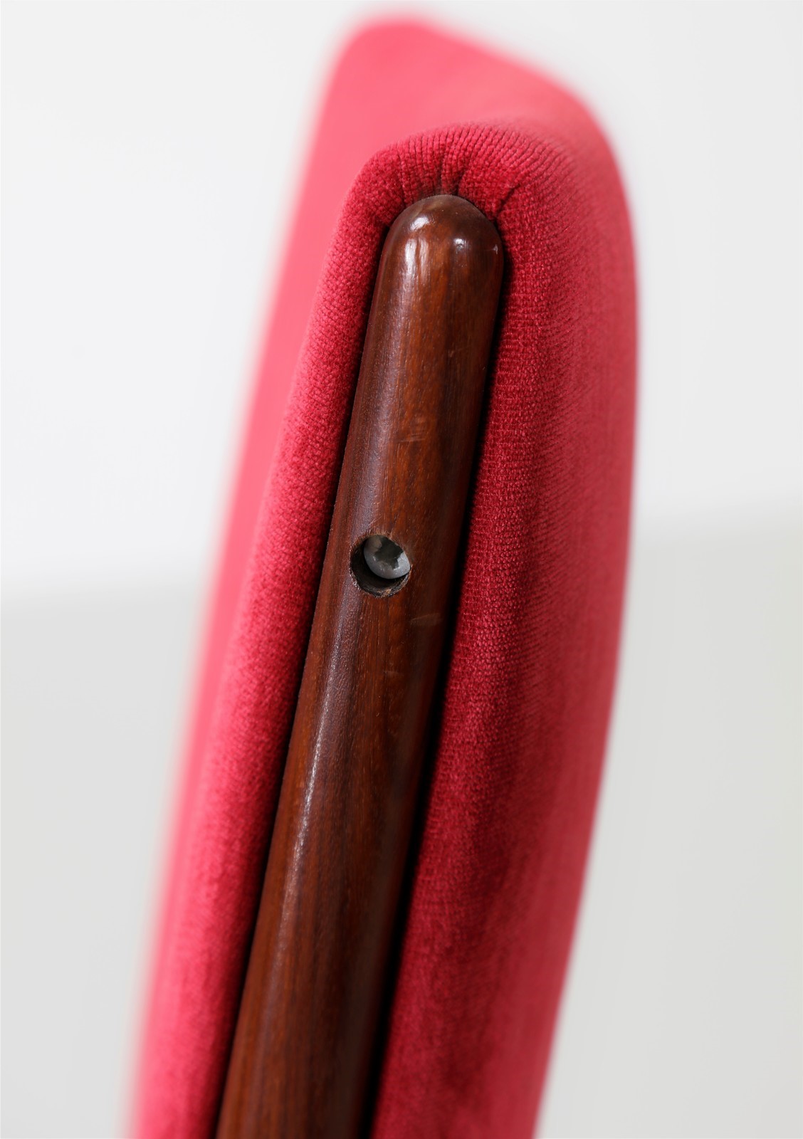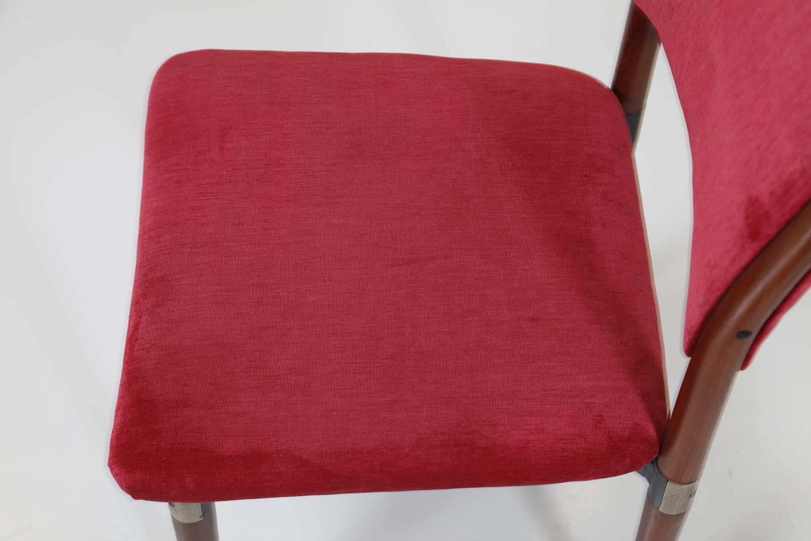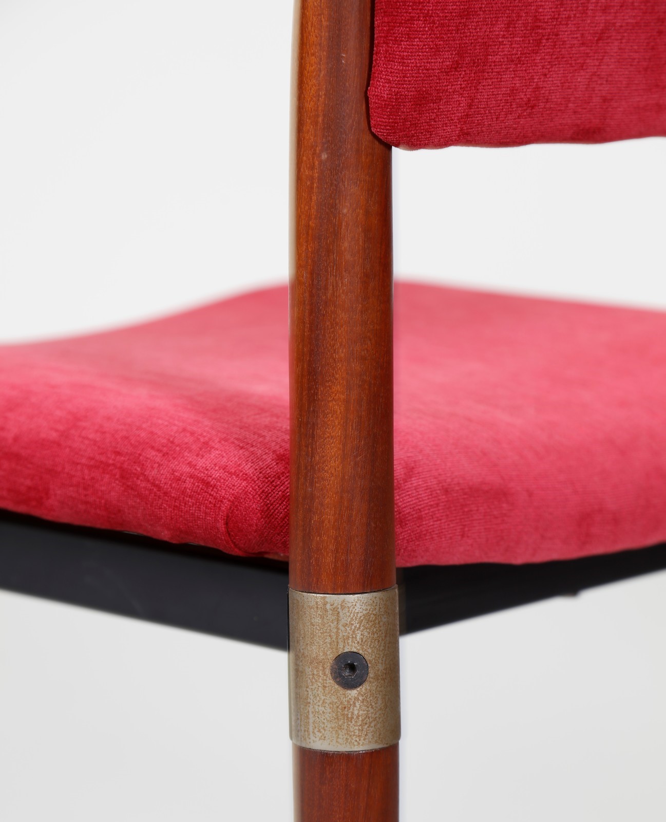 GERLI EUGENIO (n. 1923) Eight chairs. Rosewood and fabric. Cm 42,00 x 95,00 x 46,00. Legs in rosewood, structure supporting the seat in lacquered metal, padding and fabric. Model S82, 60s.