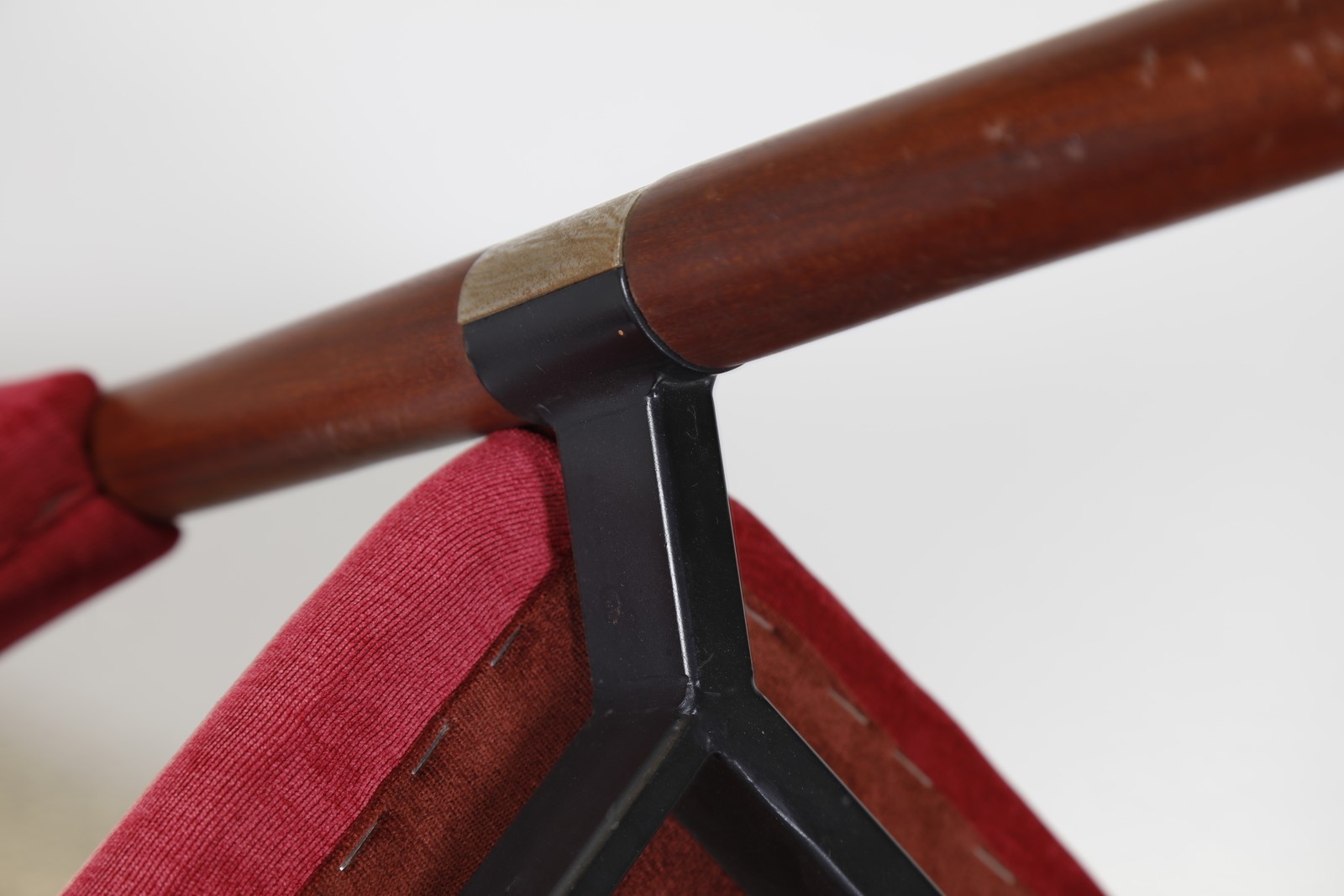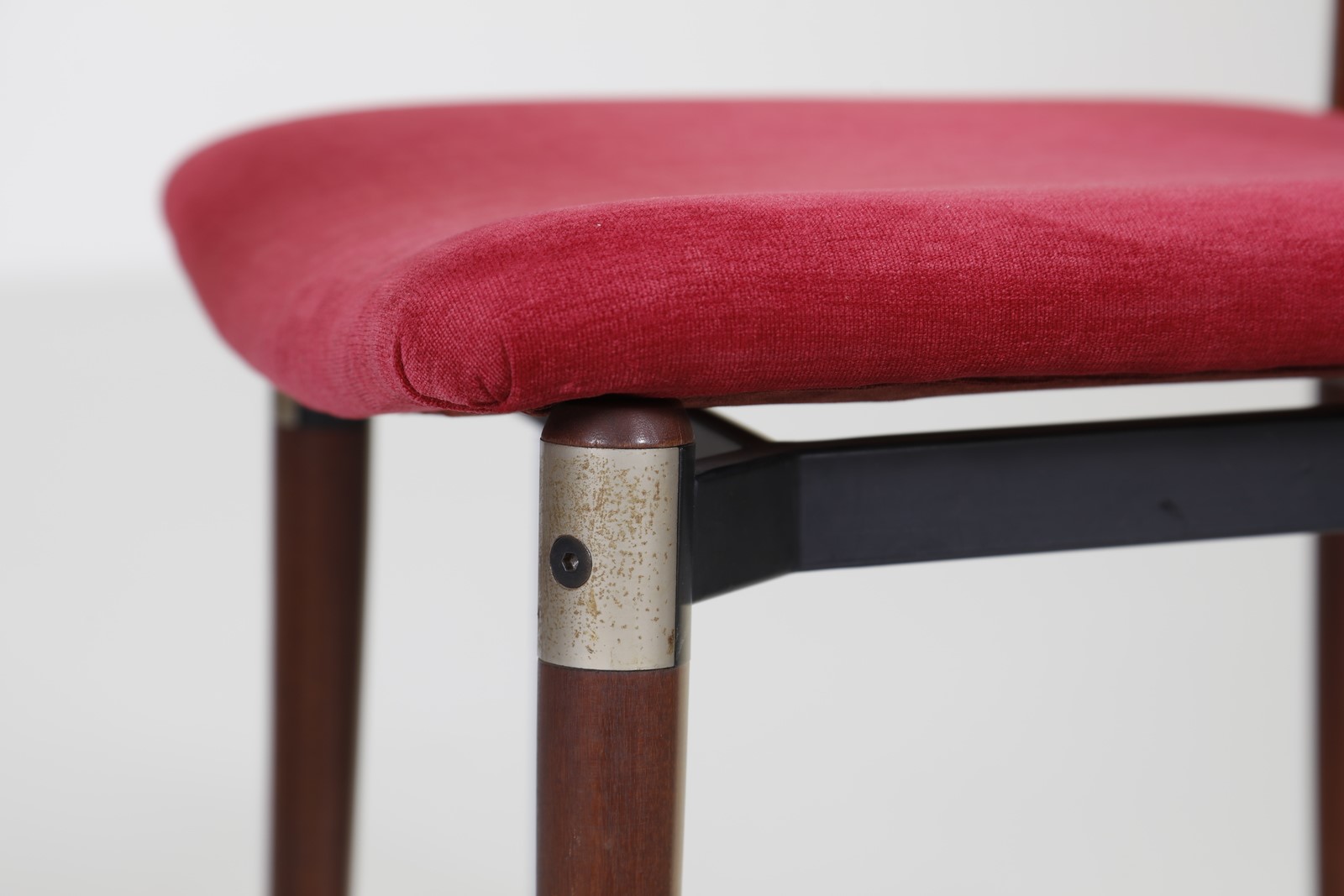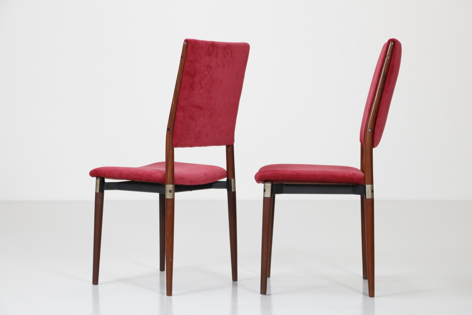 GERLI EUGENIO (n. 1923) Eight chairs. Rosewood and fabric. Cm 42,00 x 95,00 x 46,00. Legs in rosewood, structure supporting the seat in lacquered metal, padding and fabric. Model S82, 60s.