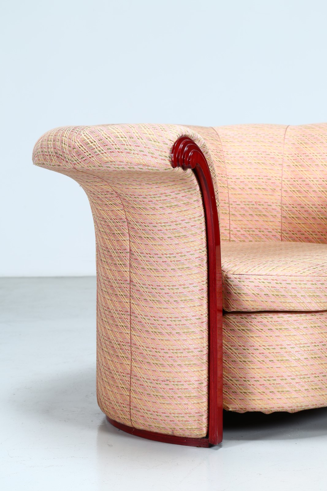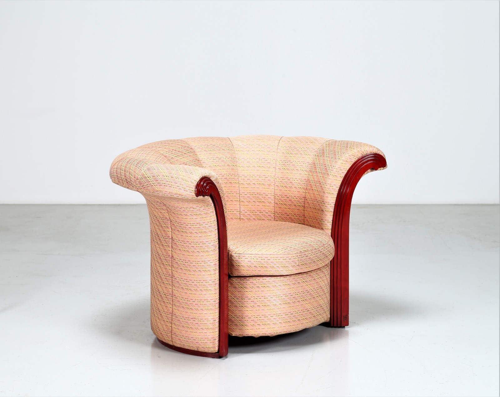 PORTOGHESI PAOLO (n. 1931) Poltrona Liuto. Legno e tessuto. Cm 110,00 x 75,00...