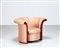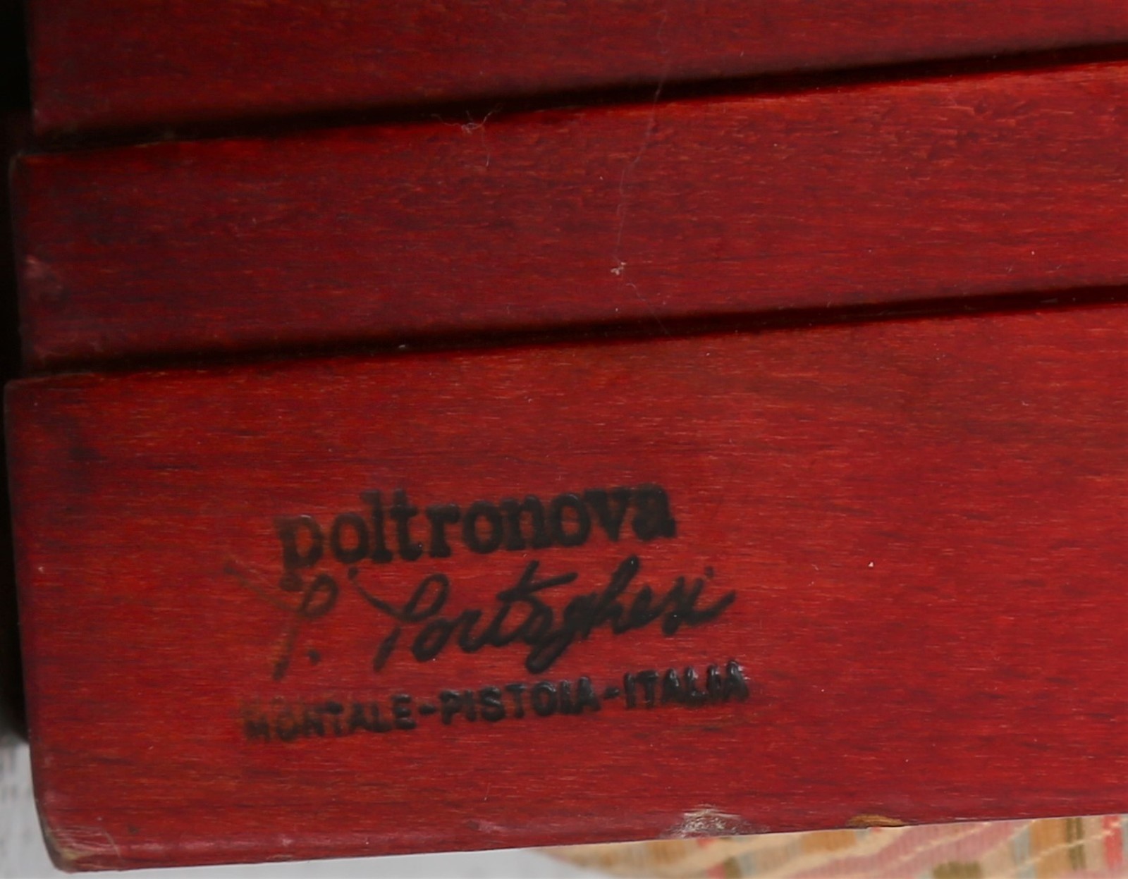 PORTOGHESI PAOLO (n. 1931) Poltrona Liuto. Legno e tessuto. Cm 110,00 x 75,00 x 90,00. Struttura in legno, imbottitura e rivestimento in tessuto. Per Poltronova, marchio dell'azienda e firma dell'autore presenti, anni 70.