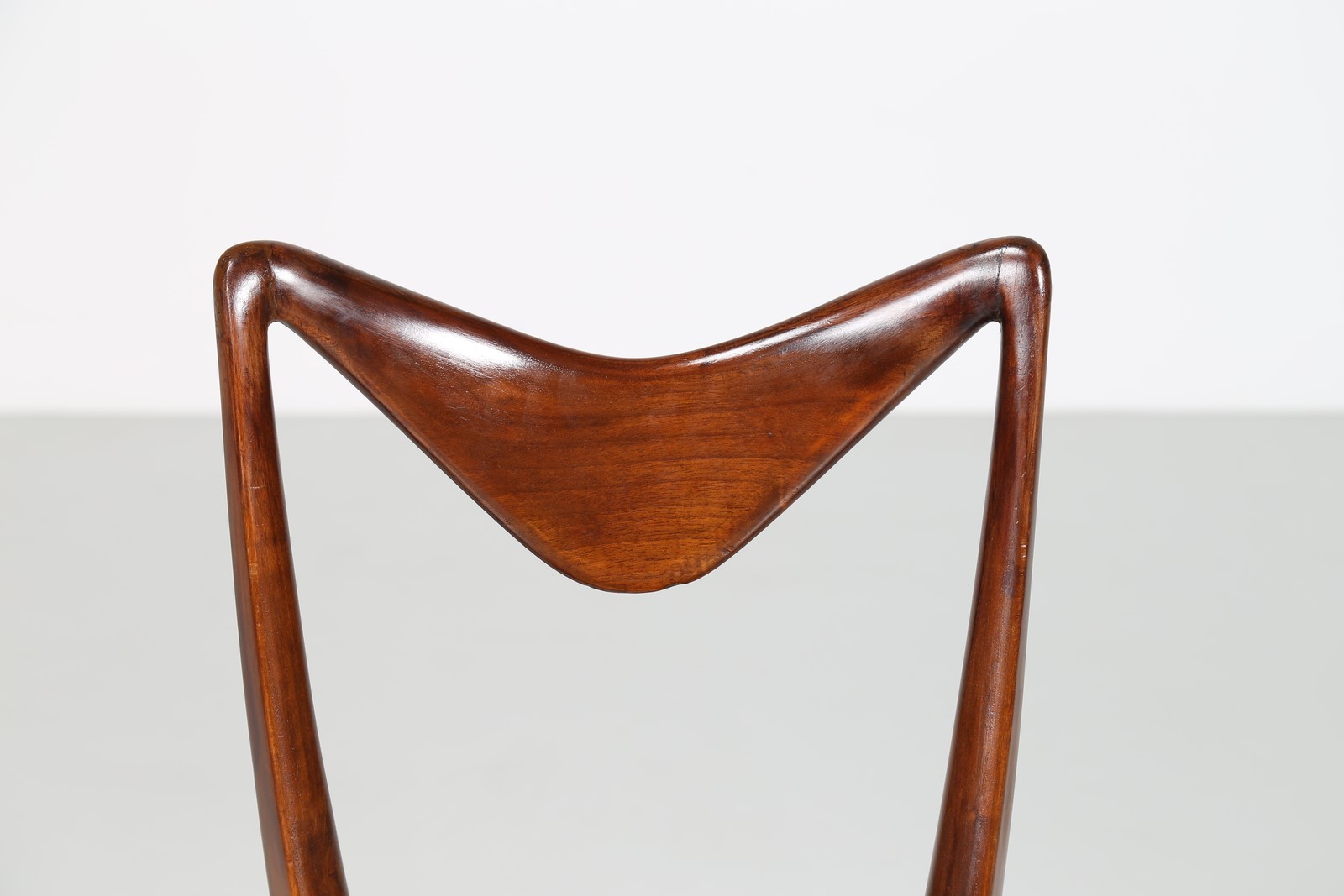 SCREMIN LUIGI (1896 - 1983) Seven chairs. walnut wood and skai. Cm 47,00 x 90,00 x 52,00. Walnut wood structure, padding and original skai. Production Fratelli Scremin, Belluno, 40s.