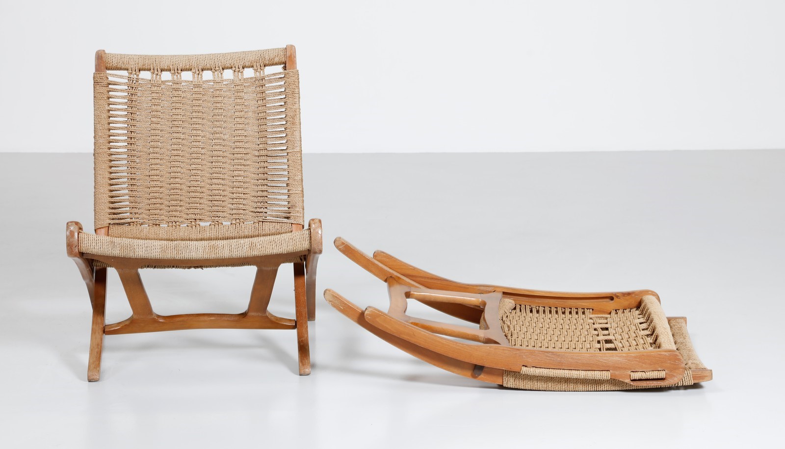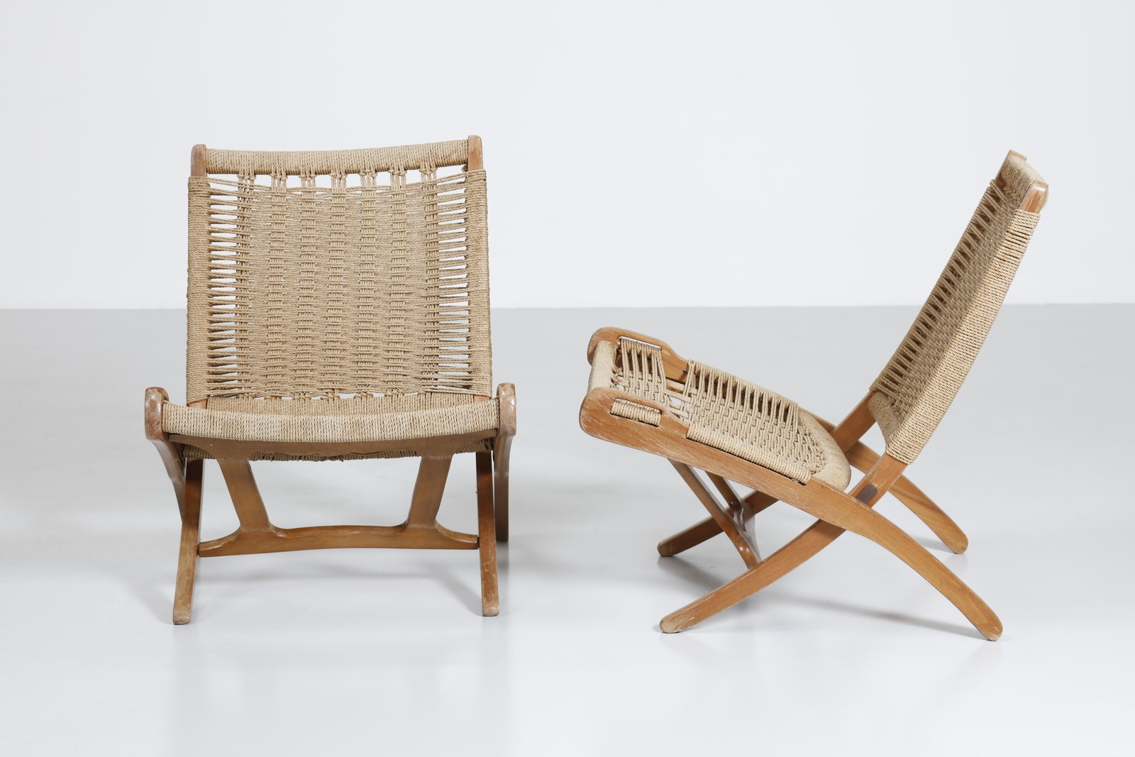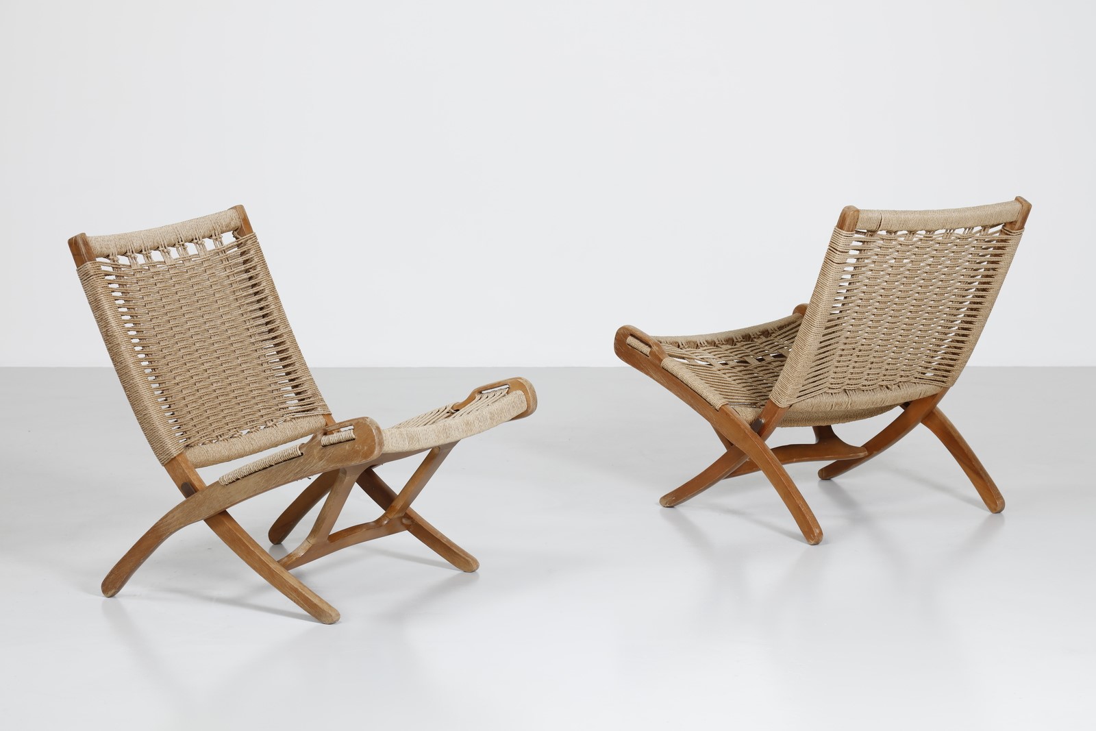 WEGNER HANS J. Coppia di poltroncine pieghevoli. Legno di faggio. Cm 60,00 x 72,00 x 80,00.