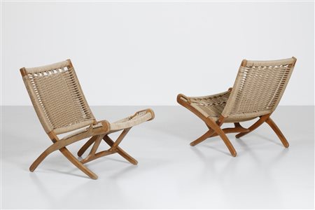 WEGNER HANS J. Coppia di poltroncine pieghevoli. Legno di faggio. Cm 60,00 x...