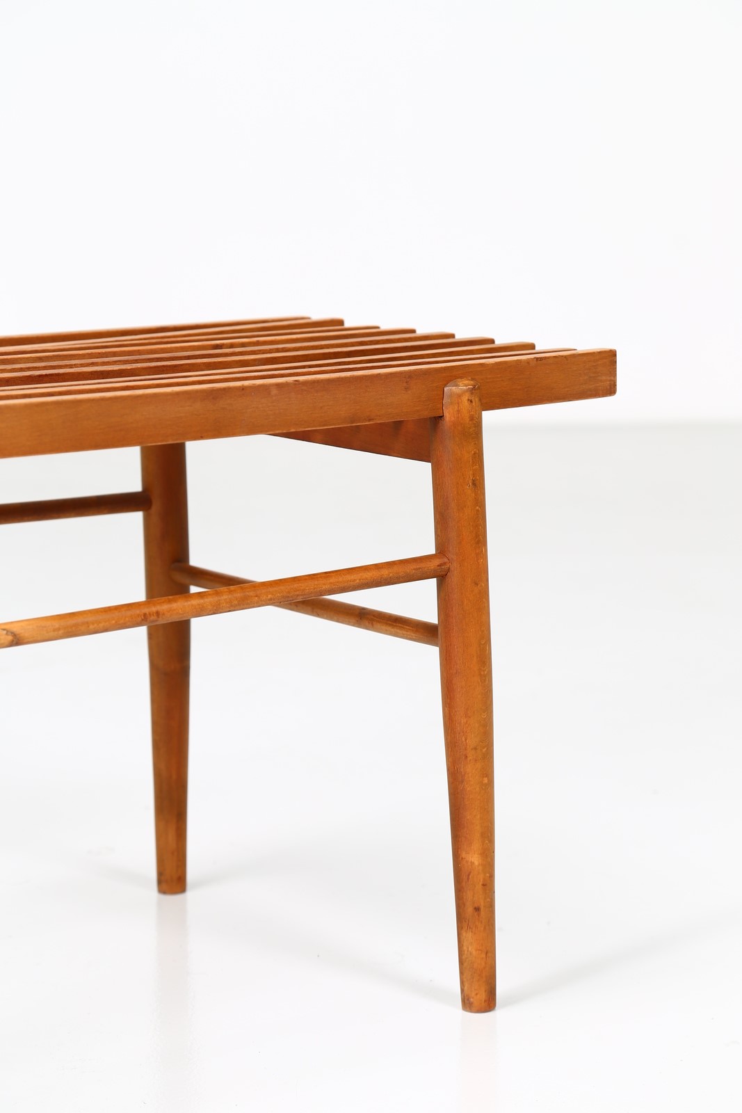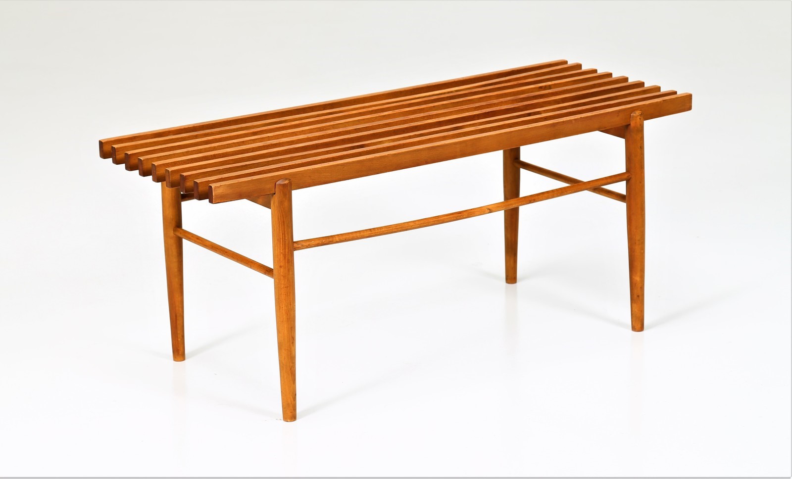 MANIFATTURA ITALIANA Tavolino. Legno. Cm 100,00 x 43,00 x 37,00. Base e piano in legno, anni 60.
