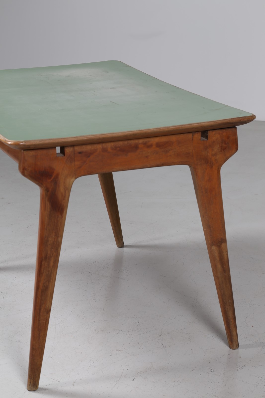 . Wood and formica. Cm 127,00 x 79,00 x 80,00. Wooden base, top in green formica. 50s.