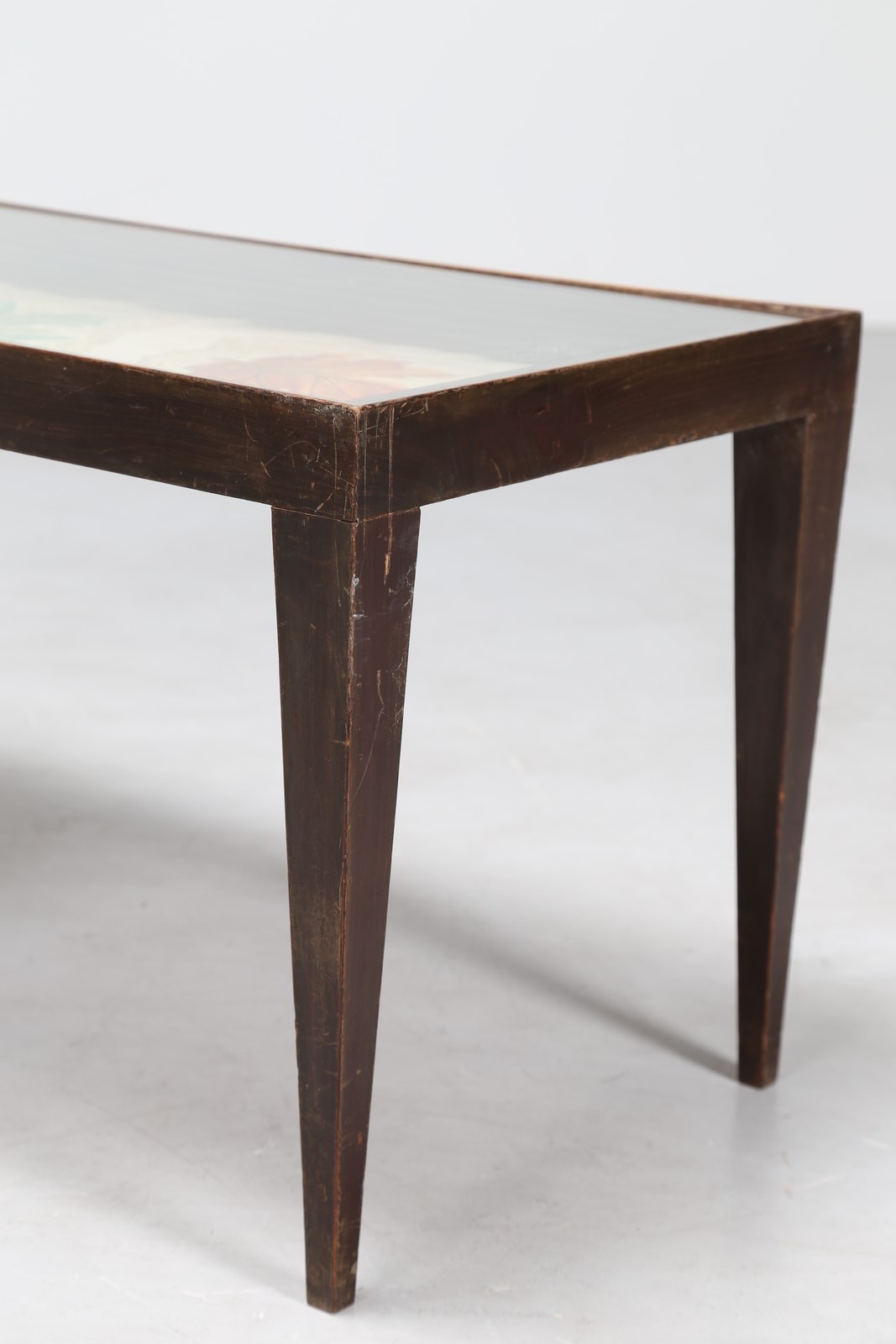 BUFFA PAOLO (1903 - 1970) Coffee table. Walnut and glass. Cm 95,00 x 45,50 x 43,00. Base in walnut wood and glass top. Drawings attributed to Alberto Salietti, 40s.