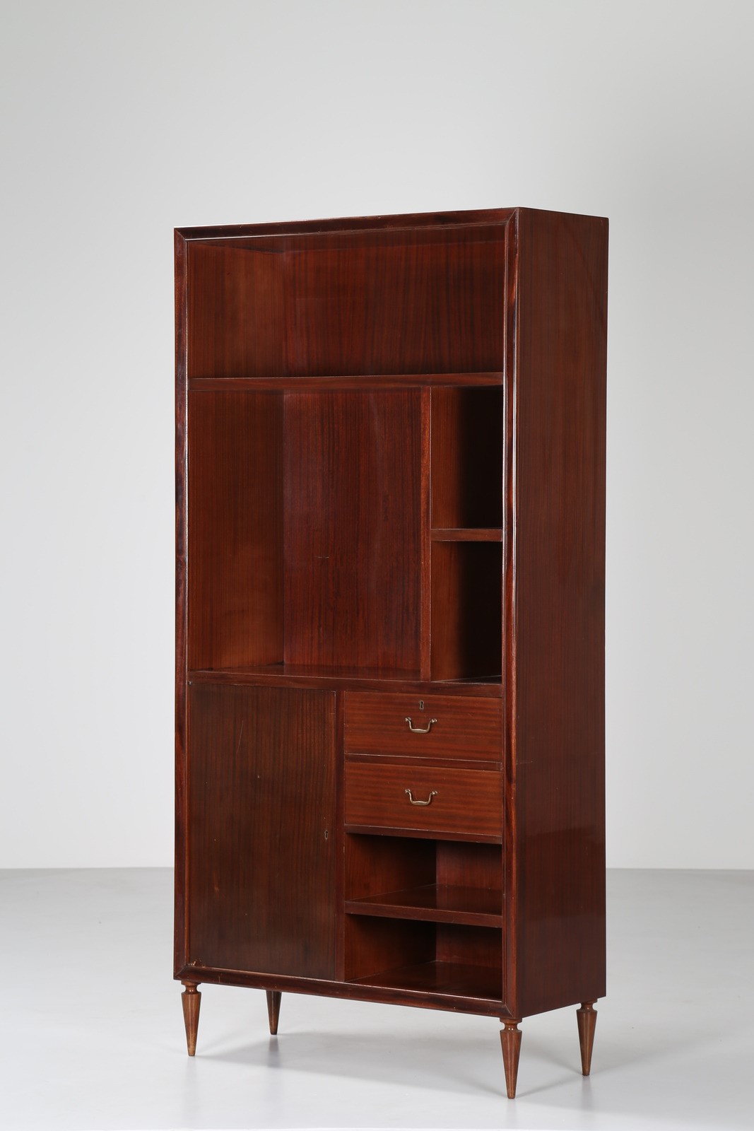 SPADOLINI PIERLUIGI (1922 - 2000) Attrib. Coppia di mobili. Legno di Mogano. Cm 100,00 x 203,00 x 40,50. Struttura in legno di mogano lucidato, dettagli in ottone. Anni 50.