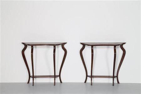 TEMPESTINI MAURIZIO (1908 - 1960) Coppia di consolle. Legno di noce. Cm 95,00 x 89,00 x 27,00. Legno di noce bruno, produzione fiorentina, anni 40.