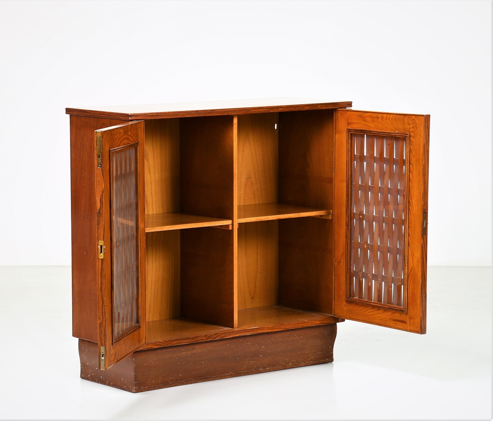 PECORINI GUGLIELMO Credenza. Legno di rovere. Cm 105,00 x 101,00 x 41,00. Struttura in legno di rovere, pezzo unico, parte di arredi Casa Urbano Zaccagnini, Firenze 1935.