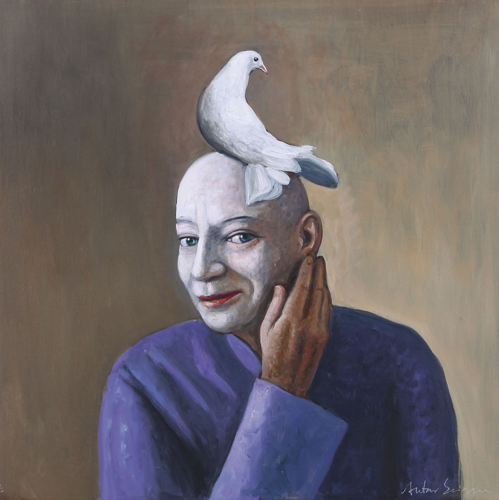 ANTONIO SCIACCA Catania 13/05/1957 Il candore di un ittiano olio su tela cm. 60x60, firma in basso a destra, titolo e firma al retro, dichiarazione d'autenticità dell'artista su foto, opera senza cornice.