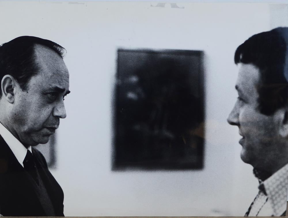 Alfio Di Bella LEONARDO SCIASCIA fotografia ai sali d'argento, cm 18x24 eseguito nel 1973 fotografia scatata durante la mostra alla Galleria d'Arte Il Gabbiano di Roma