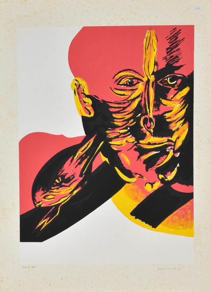 Remo Brindisi EMOZIONE serigrafia su carta, cm 70x50 esemplare 77 su 120 sul fronte: firma L'opera presenta diffuse macchie di umidità
