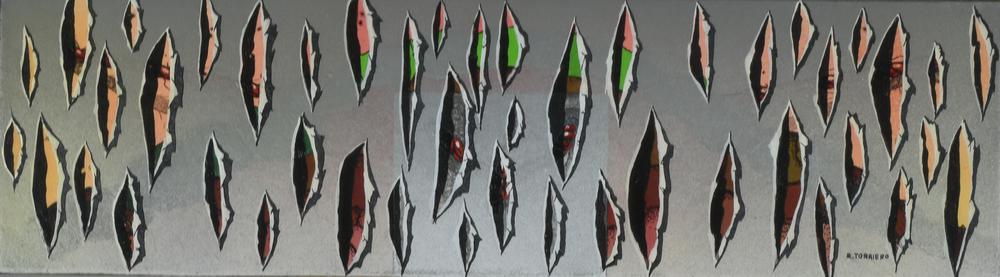 Elio Torriero TAGLI VERTICALI tecnica mista su masonite, cm 15x50 sul fronte:...