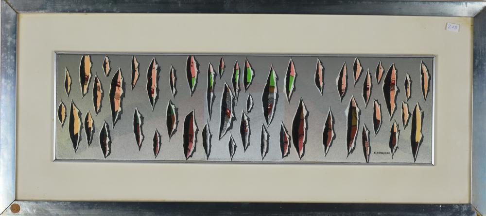 Elio Torriero TAGLI VERTICALI tecnica mista su masonite, cm 15x50 sul fronte: firma sul retro: firma, titolo e data eseguita nel 1974