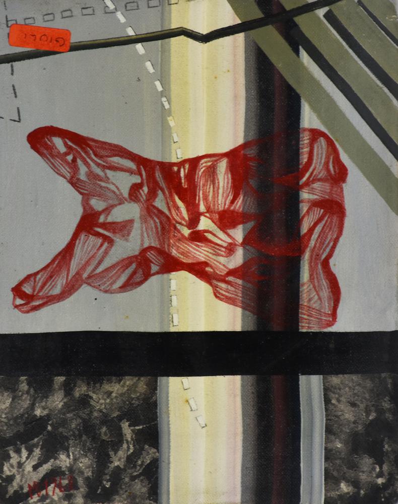 Bruno Vettori SITUAZIONE DENTRO E FUORI olio su tela, cm 25x20 sul fronte:...