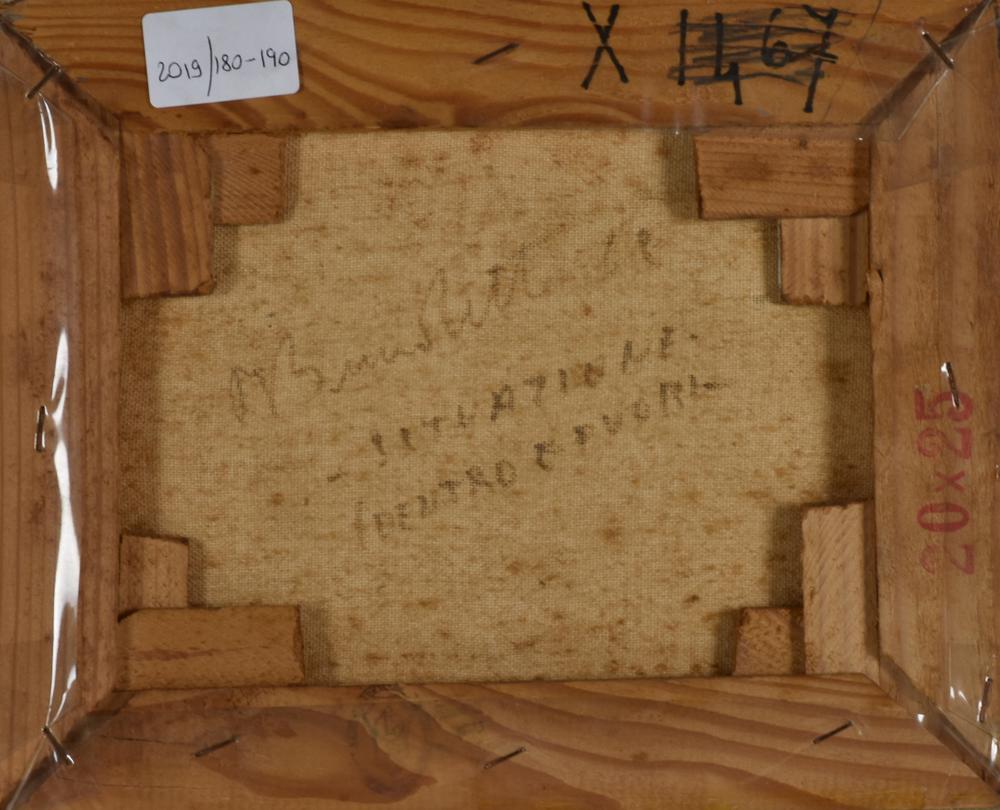 Bruno Vettori SITUAZIONE DENTRO E FUORI olio su tela, cm 25x20 sul fronte: sigla e data sul retro: firma e titolo eseguito nel 1968
