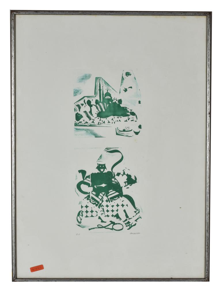 Ezio Gribaudo IMMAGINI D'ORIENTE incisione su carta, cm 60x44 (lastra cm 37x16) esemplare E.U. sul fronte: firma eseguito nel 1967