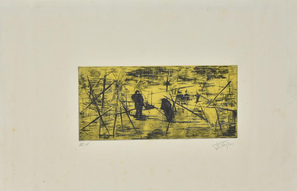 Silkbaja FIGURE NEL PAESAGGIO acquatinta su carta, cm 38x57 (lastra cm 13,5x29) esemplare E. A. sul fronte: firma L'opera presenta alcune macchie di umidità