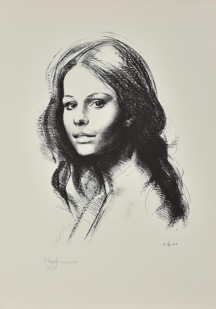 Giorgio Salmoiraghi RITRATTO FEMMINILE litografia su carta, cm 70,5x50 esemplare 70 su 75 sul fronte: sigla e data eseguita nel 1974