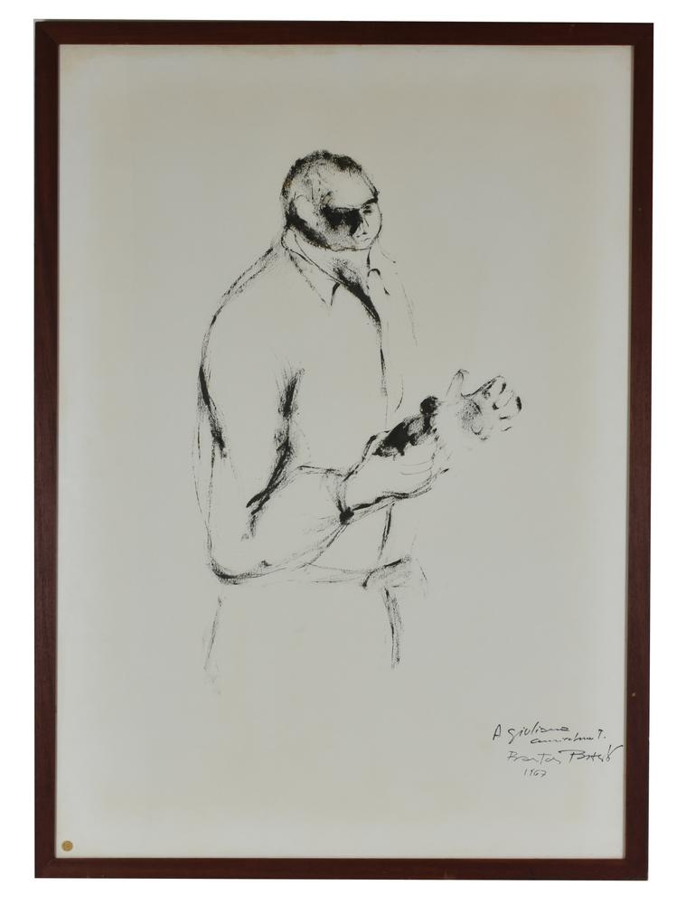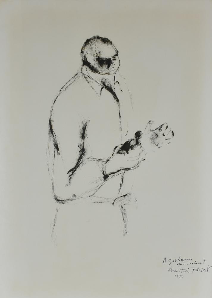 Bastos IL PORTINAIO olio su carta, cm 100x70 sul fronte: firma e data eseguito nel 1967