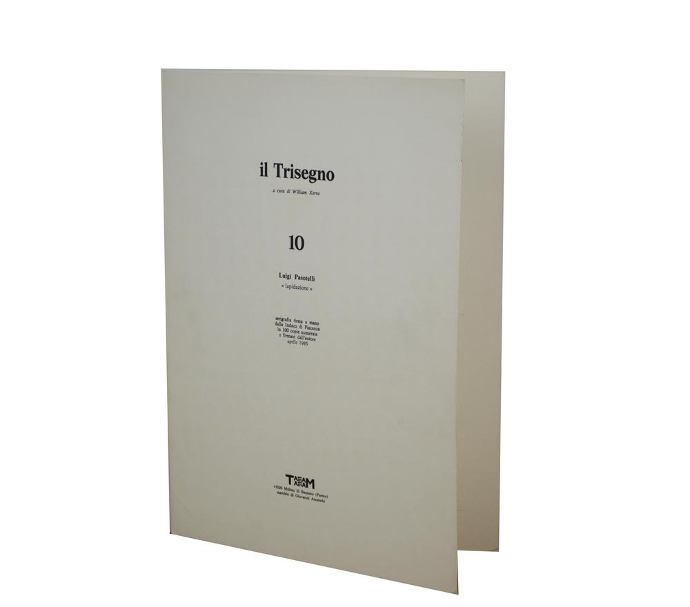 Luigi Pasotelli LAPIDAZIONE serigrafia, cm 34,5x24,5; es. 63/100 siglato e numerato eseguito nel 1983 La serigrafia fa parte de Il Trisegno a cura di William Xerra ed è stata tirata dalla Indaco, Piacenza