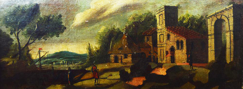 Scuola del XX secolo VEDUTA olio su tela, cm 92x37 L'opera presenta alcune...