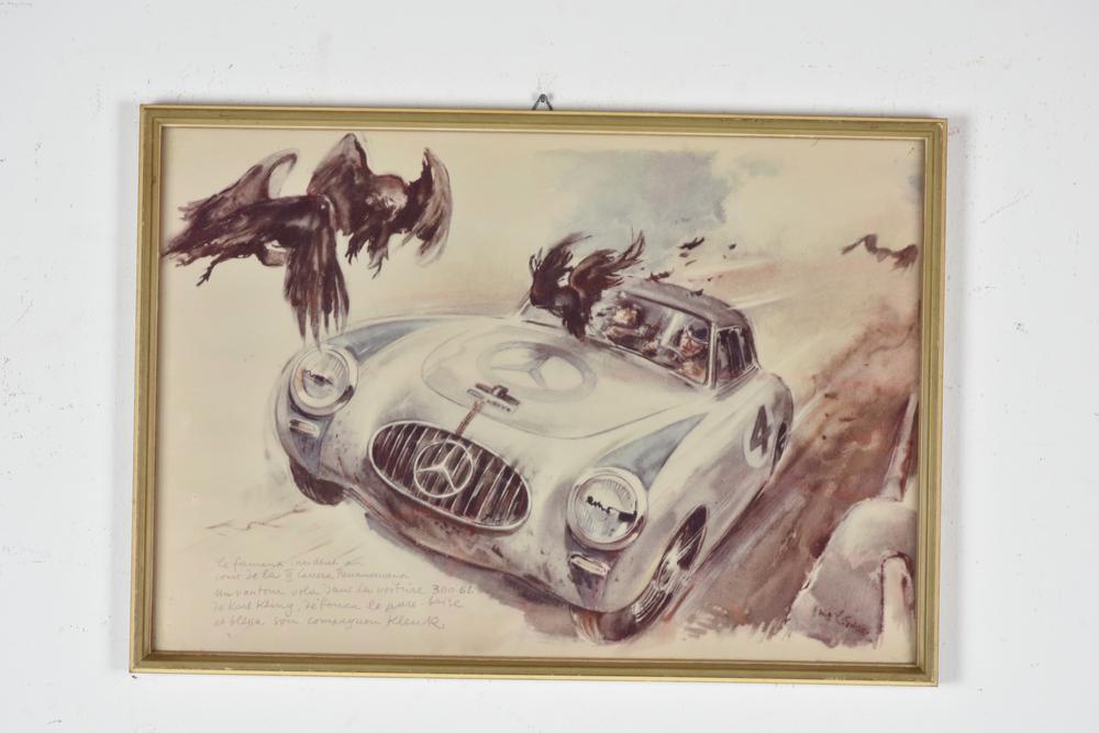 Ignoto MERCEDES 300 SL, ALI DI GABBIANO stampa su carta, cm 27x39 sul fronte: firma L'opera raffigura il famoso incidente avvenuto durante la III Carrera Panamericana alla macchina guidata da De Karl Kliny