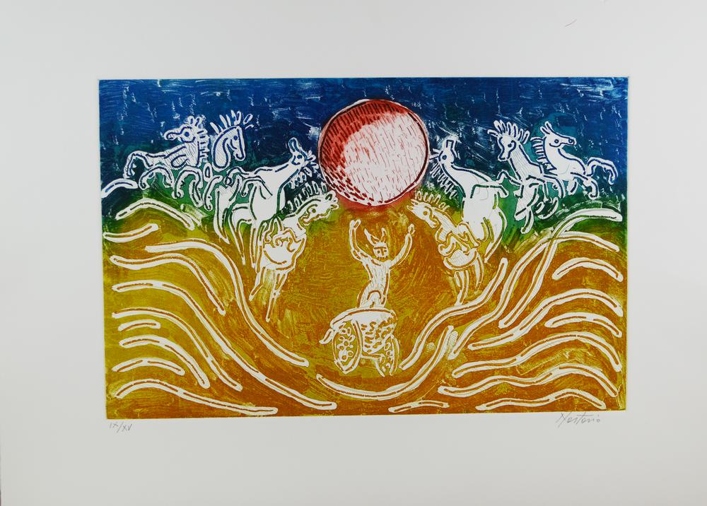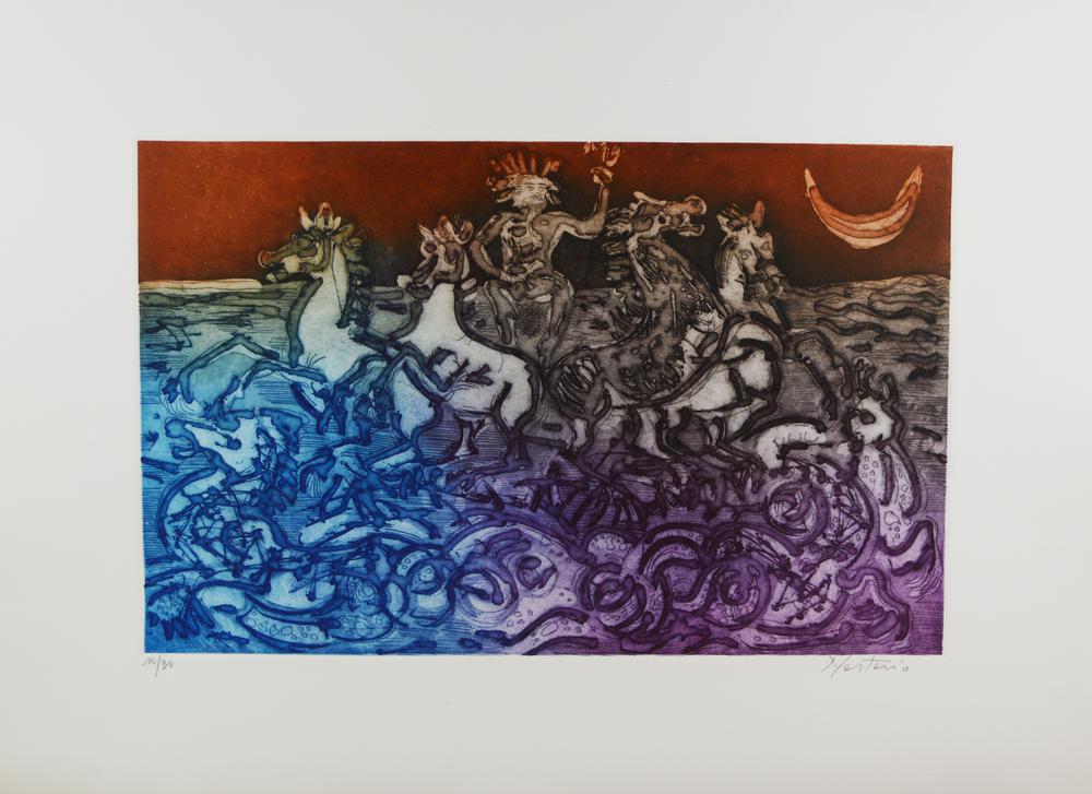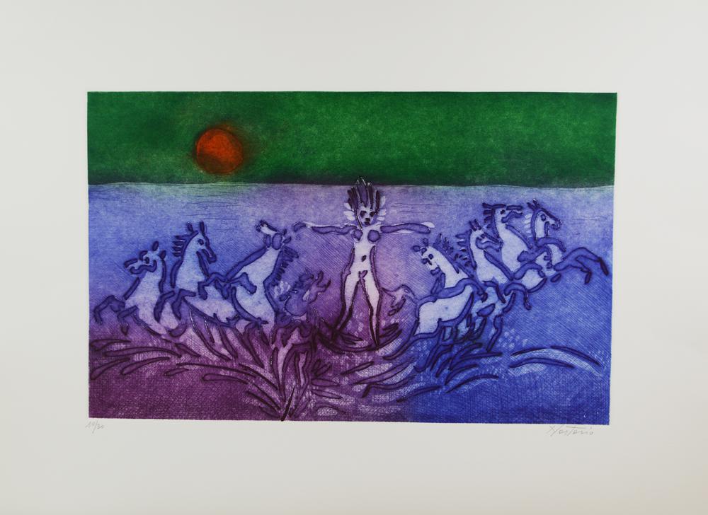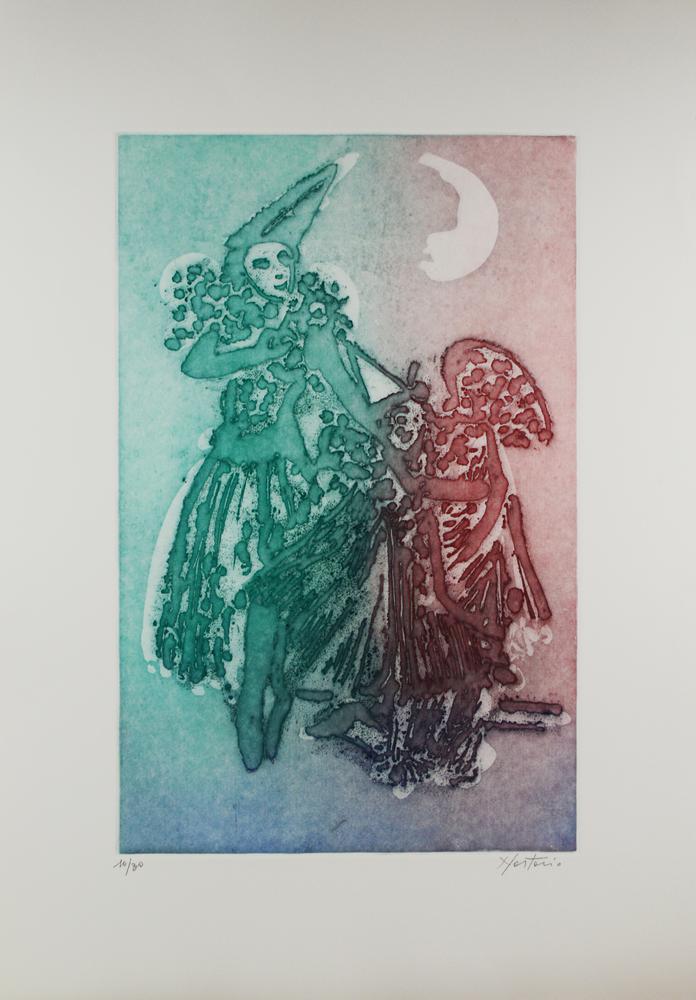 I) Senza titolo. Acquatinta a colori. mm 490x312. Foglio: mm 690x500.